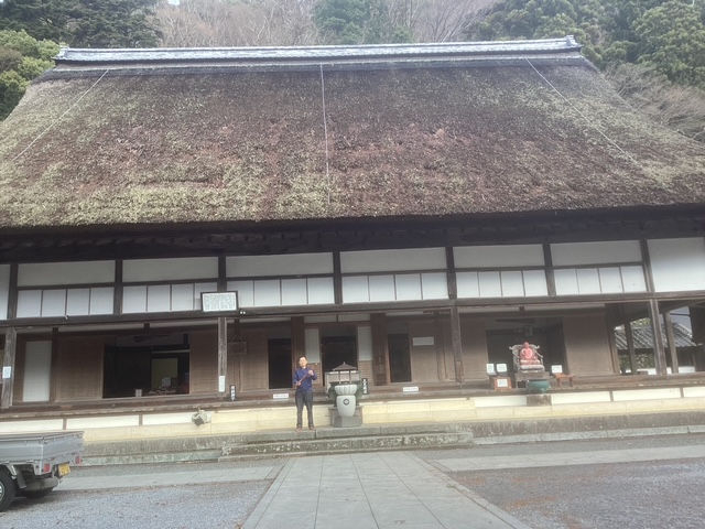 12月15日の朝、妻と車で神奈川県川崎市の自宅を出発し、380キロ走行して、午後4時に滋賀県東近江市の永源寺温泉八風の湯に到着しました。翌朝、午前9時に宿を出発して、永源寺に出かけました。私の実家がある岡山県高梁市には、永源寺の末寺で小堀遠州の庭園が有名な頼久寺があります。今回は、その永源寺派の本山に立ち寄りました。私の尺八の弟子で、ポーランド在住のブンユウ氏は、永源寺派の僧侶です。2年前には、永源寺でのお盆の行事に来日して、帰りに、私の川崎市の自宅に稽古に来ました。今回は、永源寺で御朱印をいただき、茅葺の本堂の前で、岡本竹外先生が愛用されていました大久保甲童作の2尺3寸管で阿字観を献奏、次に法堂の前で、天井の龍に向かい、手向けを献奏しました。どの建物も落ち葉が積もっていたので、業者が屋根の上でブロワーで落ち葉を落としていました。帰りに駐車場の茶店で田楽や琵琶湖のもろこの甘露煮をご馳走になりました。昼に永源寺を出発、残り、岡山県高梁市の実家まで320キロ走行して、午後4時過ぎに無事に実家に着きました。