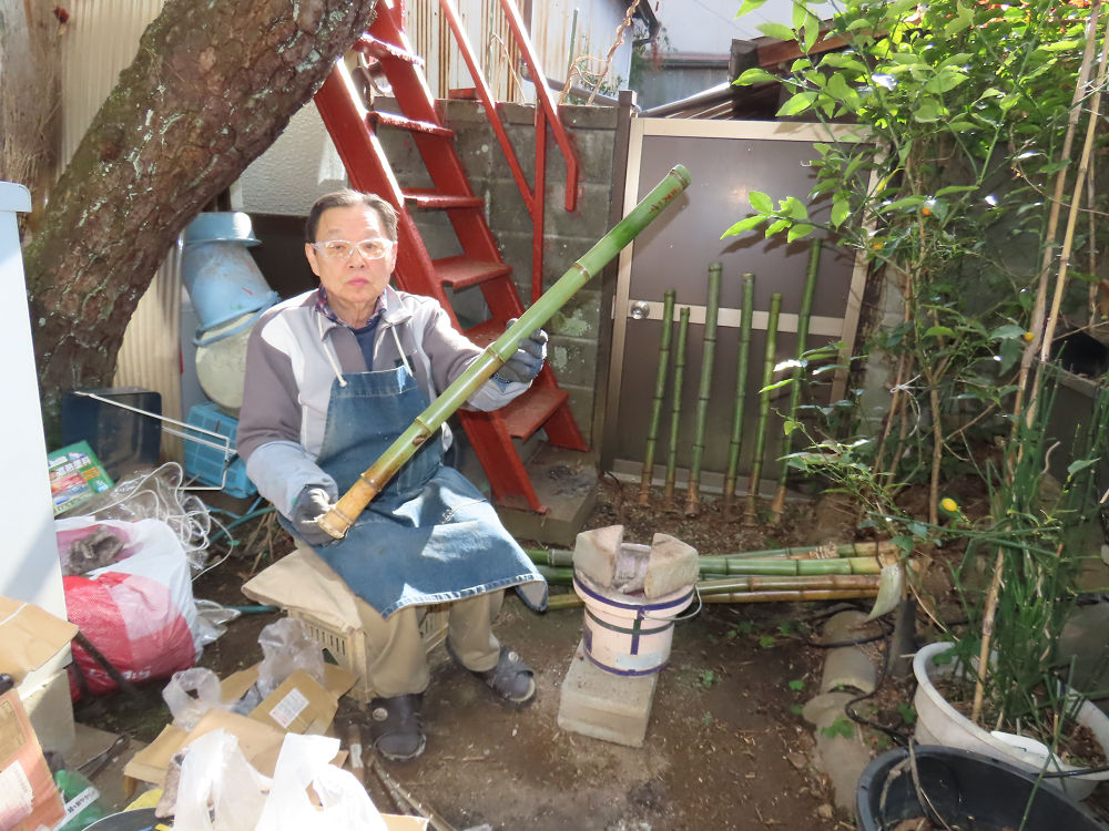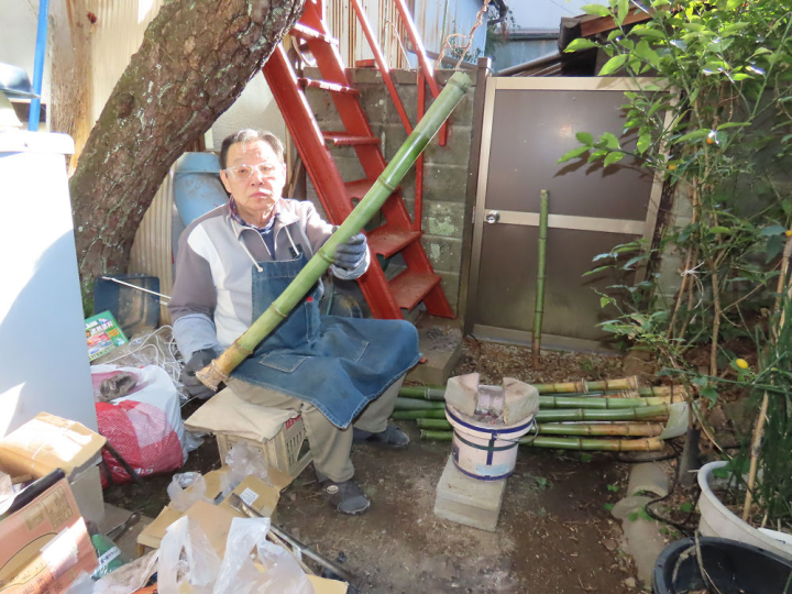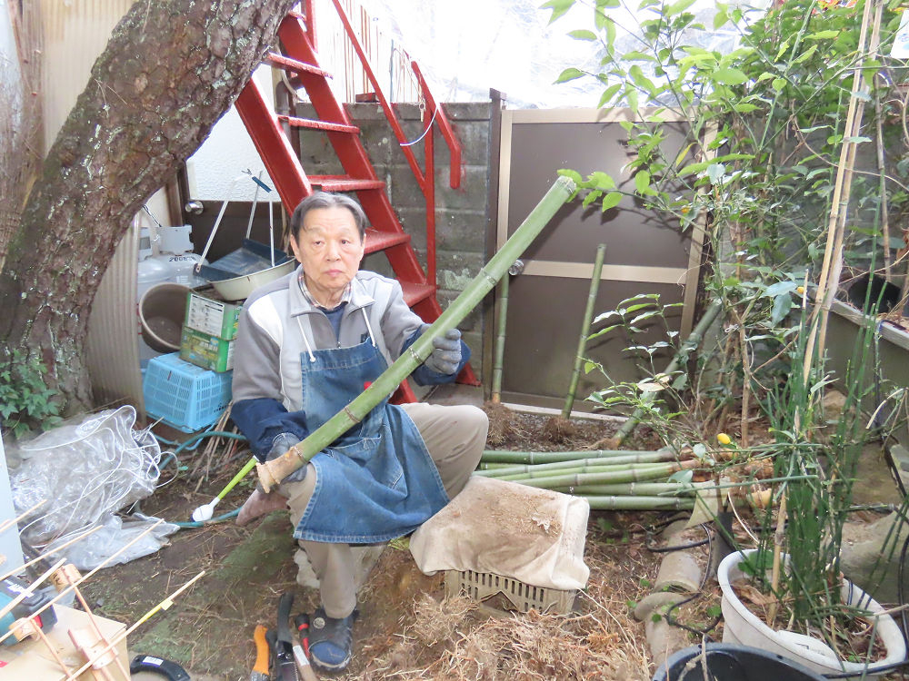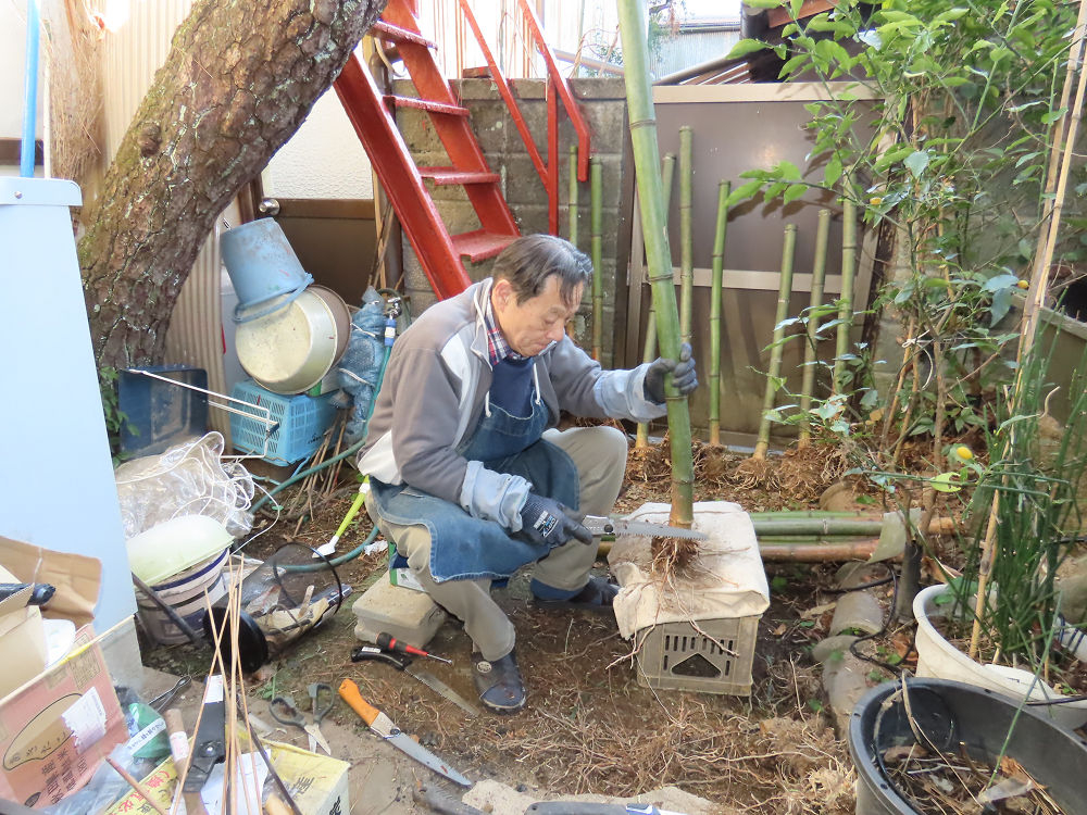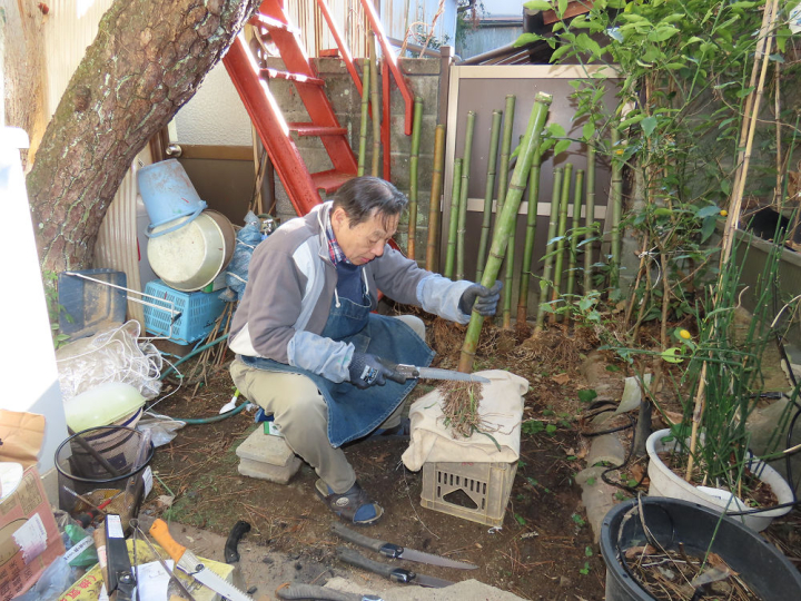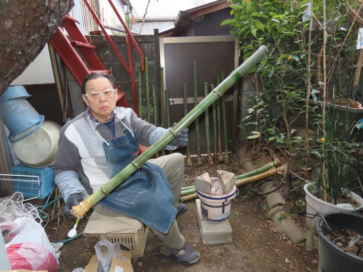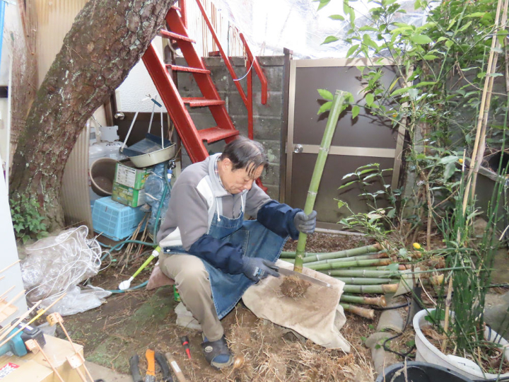 地無し尺八製作(その1)(2026.1.15)竹の根切り作業