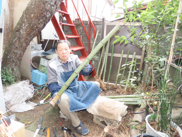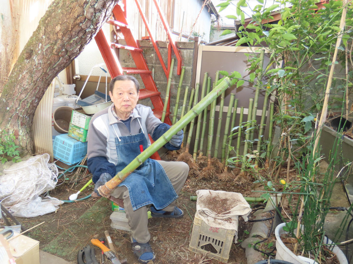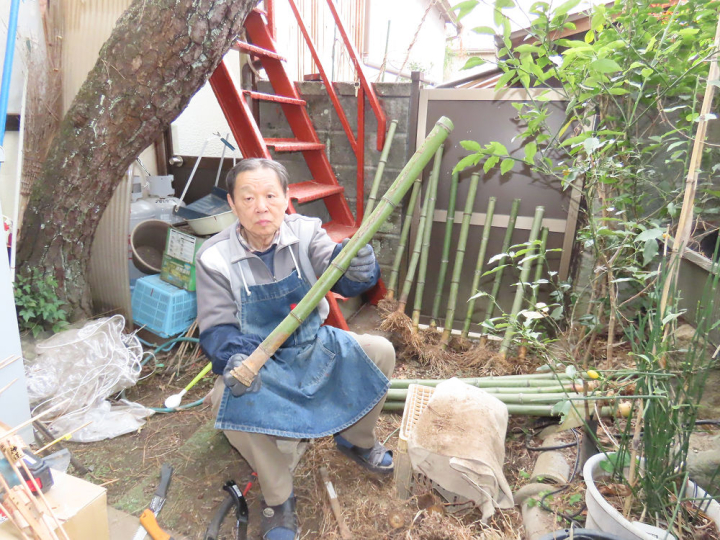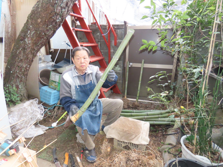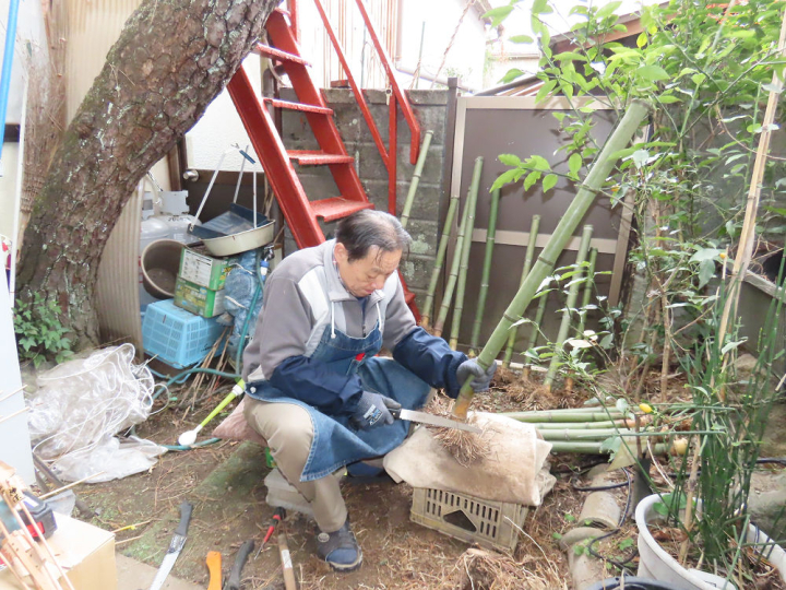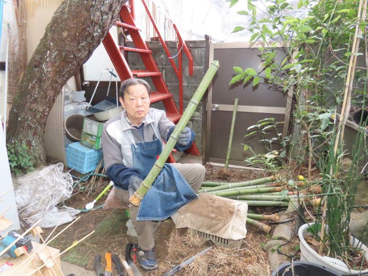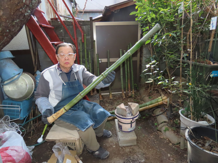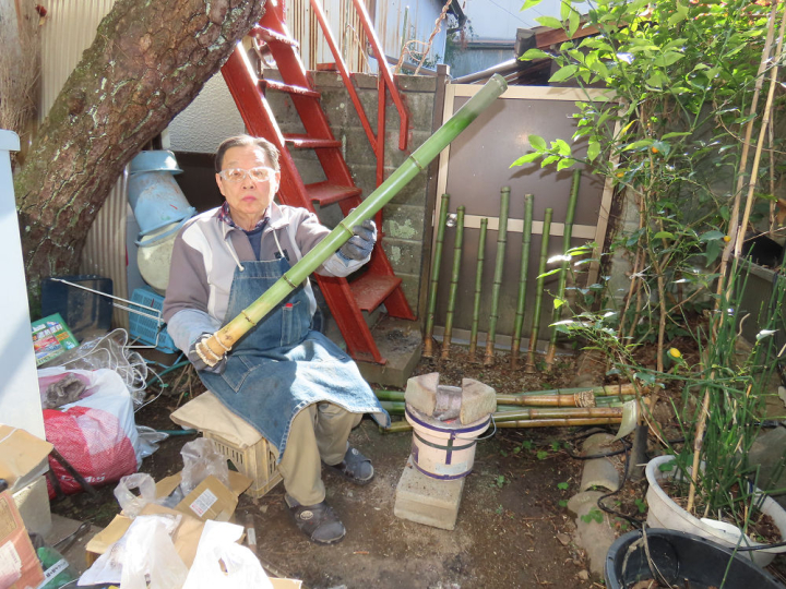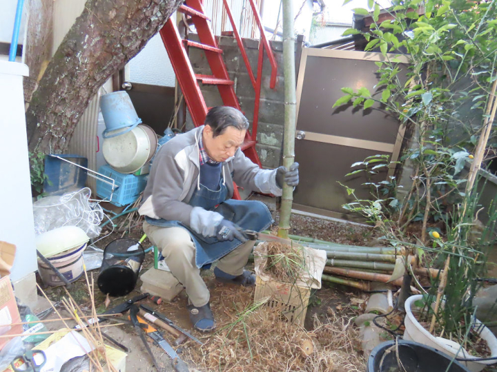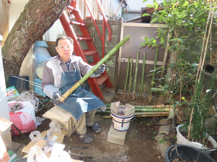 地無し尺八製作(その1)(2026.1.15)竹の根切り作業