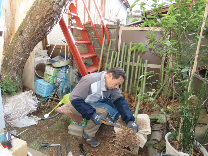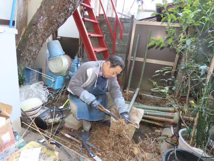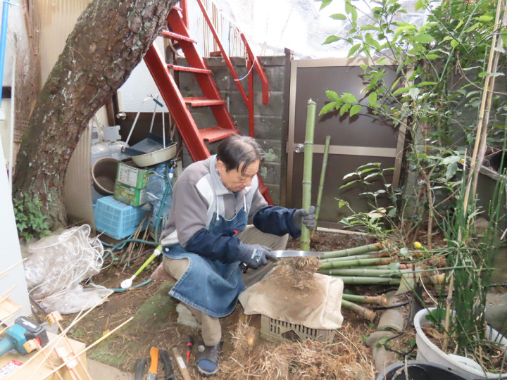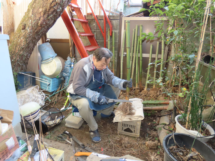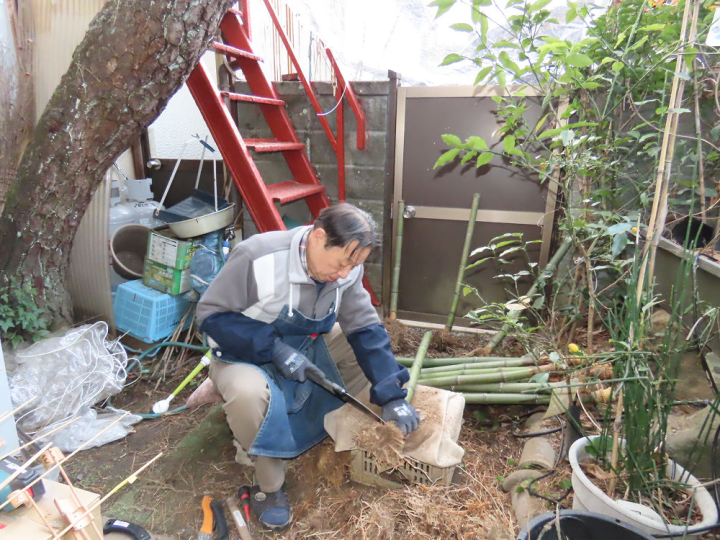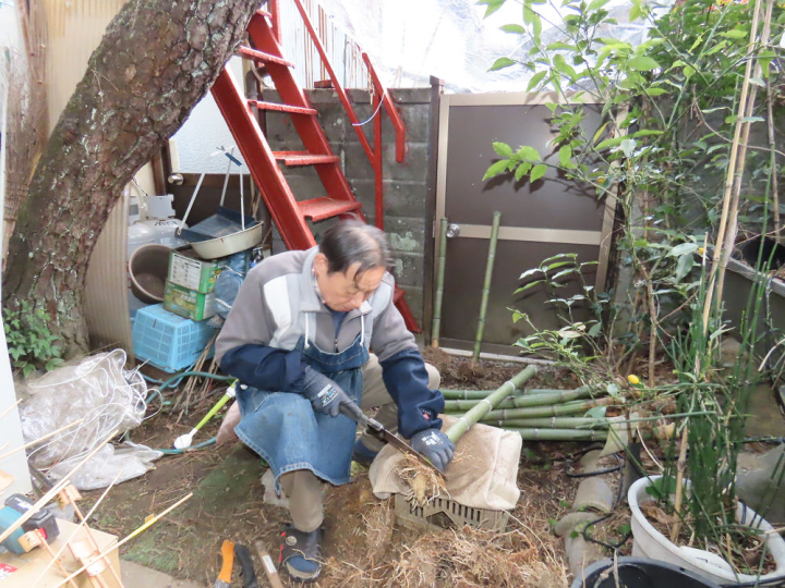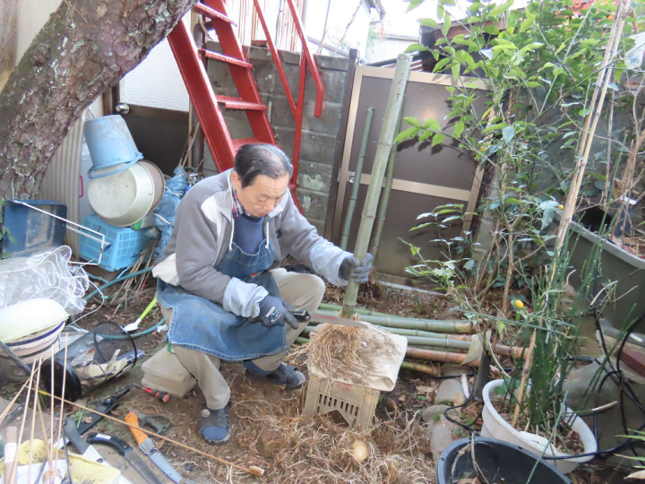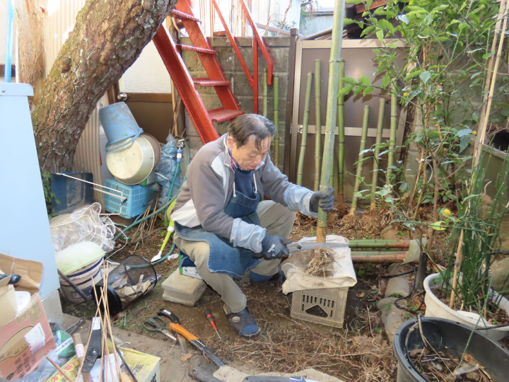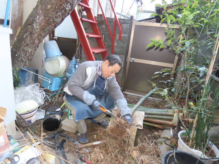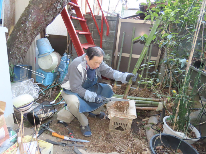 地無し尺八製作(その4)(2026.1.9)竹の根の始末作業