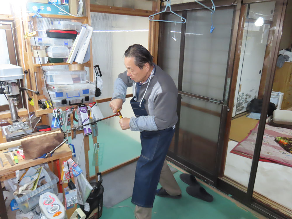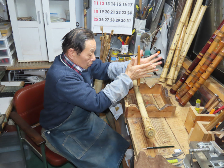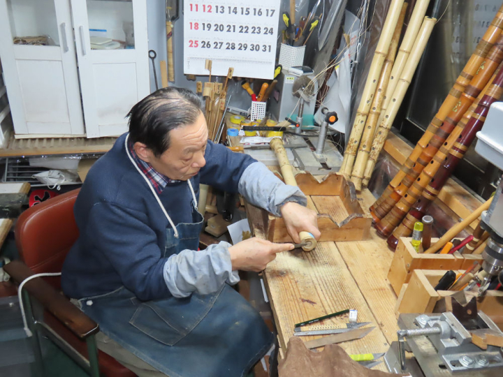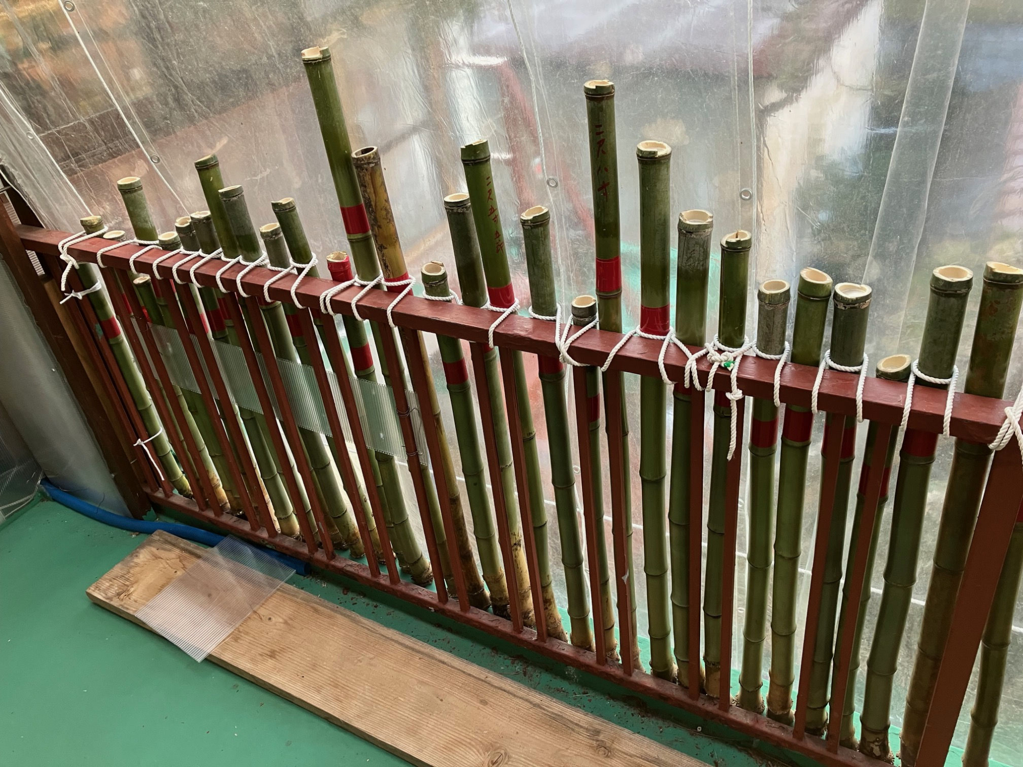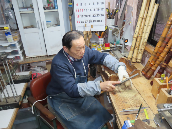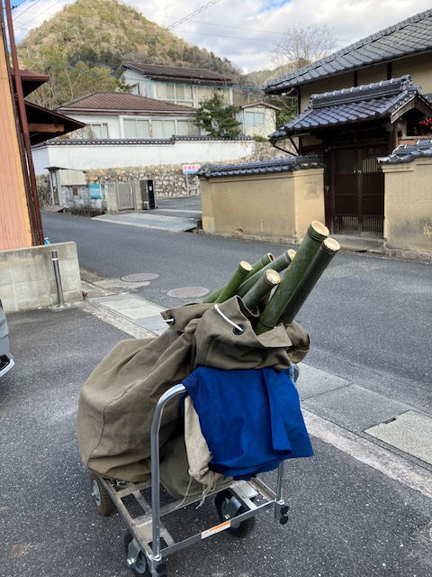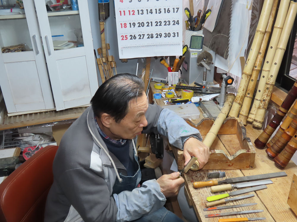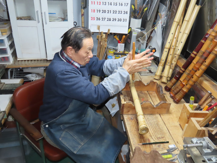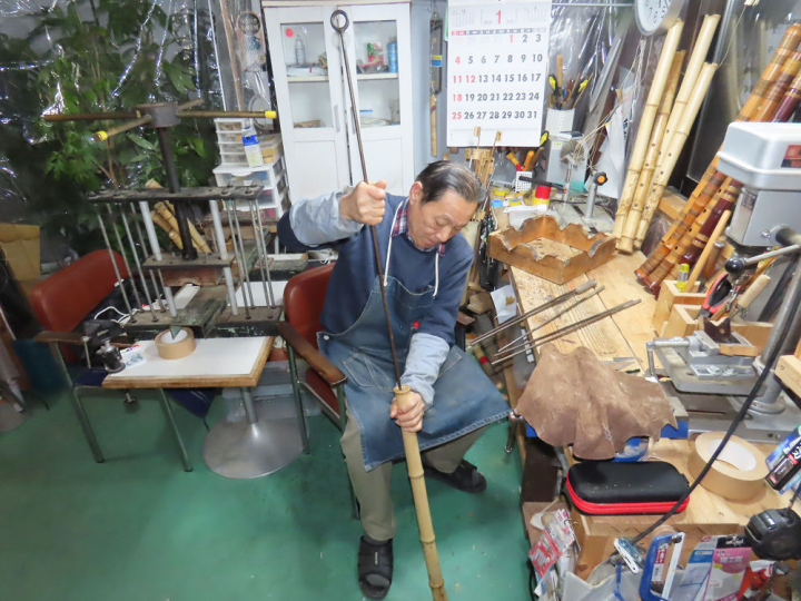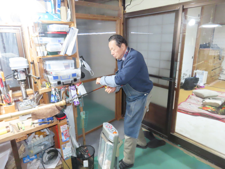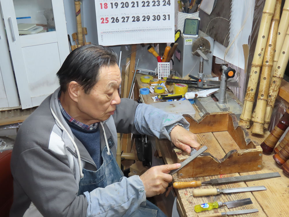 1月2日、3日、4日と雪降りの鳥取県、島根県の温泉に妻と車で出かけました。高速道も通行止めの前に通過することが出来ました。今日から、尺八製作の仕事初めです。先ずは31本の青竹の油抜き作業、午前10時に樫炭に着火して、しばらくしてから備長炭を入れ、火が着くのを待ってから、油抜きを開始しました。今回の備長炭、質が良くなく、着火の時に、粉じん爆発を繰り返すので、近所では、爆竹を鳴らしていると、思ったかも知れません。その合間に裏山では人家に高梁市の天然記念物の猿が出たようで、市の職員が爆竹を鳴らす音が、山に響いていました。31本の油抜きが完了したのは、日没の午後5時30分でした。岡本竹外先生に入門してから、地無し尺八の製作を始めて、46年が過ぎました。入門して7年目に吹き込んだ本曲のテープがありますが、琴古流式の歌口を吹く奏法であることがわかりました。逆複式丹田呼吸法がやっと出来たのは、入門して20年してから、やっと師匠の指導が完成したと思ったら、岡本先生が亡くなりました。若い時に製作した地無し尺八は、歌口を吹いて鳴らす姿でした。岡本竹外先生が50年間愛用された琴古流・大久保甲童作の2尺3寸管、先生が亡くなった後、明暗蒼龍会二代目会長の高橋峰外氏が20年間使用されました。高橋峰外氏が亡くなり、私が引き継ぎましたが、管尻内部も加工され、歌口を吹いて鳴らす尺八で、息受けも無く、なんとか使用したいと、桜井無笛作の地無し管を参考に、修正をして、やっと息受けの良い地無し管になりました。現在、製作しました地無し管は500本ばかりありますが、丹田で鳴らして、息受けが満点の地無し尺八は数本だけです。材質が良く、重たい竹材であっても、息受けが良くないと、歌口を吹く尺八になってしまいます。そんな夢のような地無し尺八を製作するために、今年もまた、竹堀に出かける予定です。