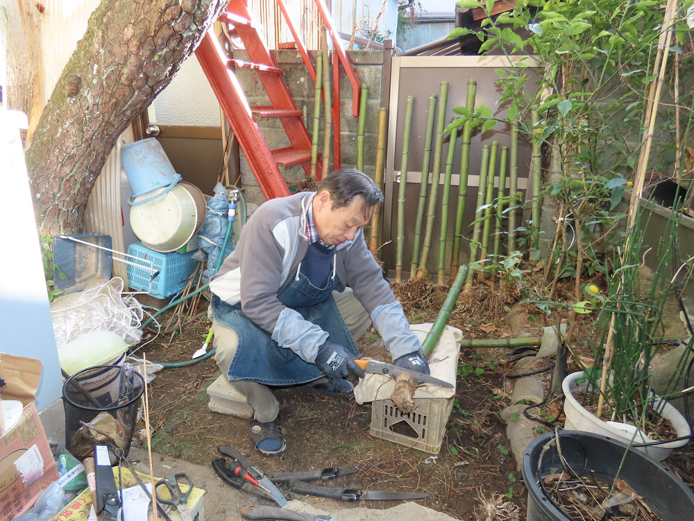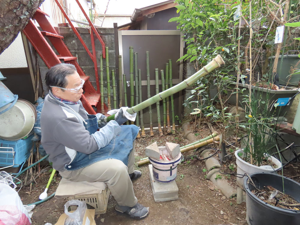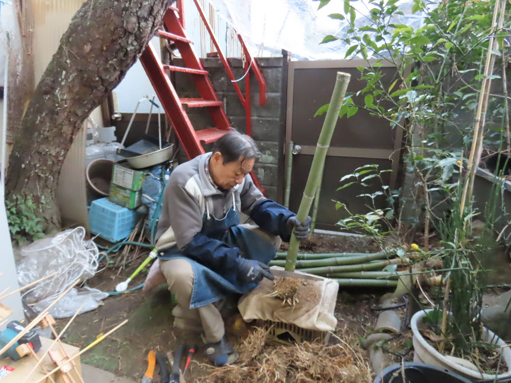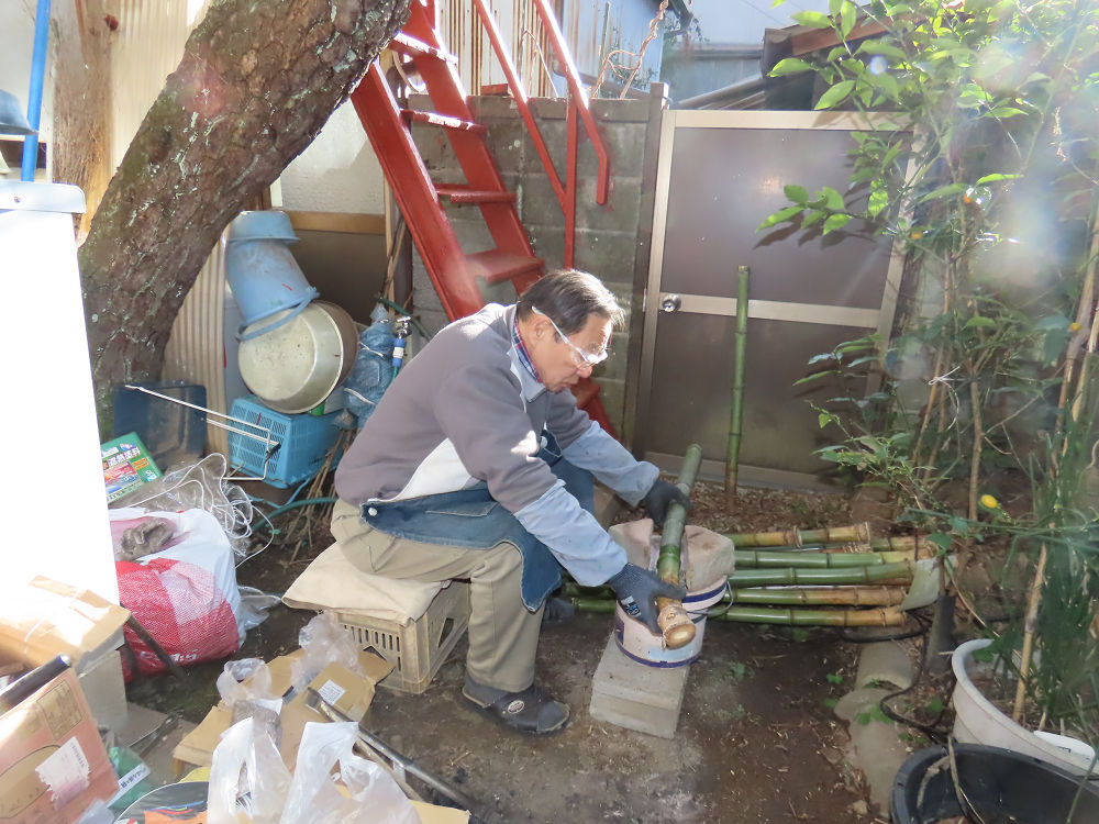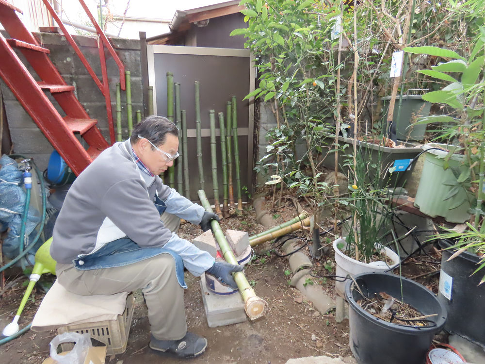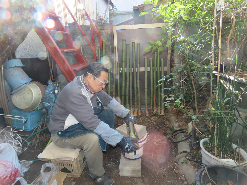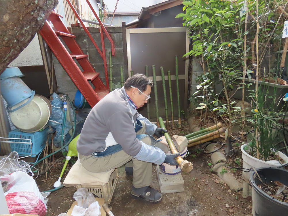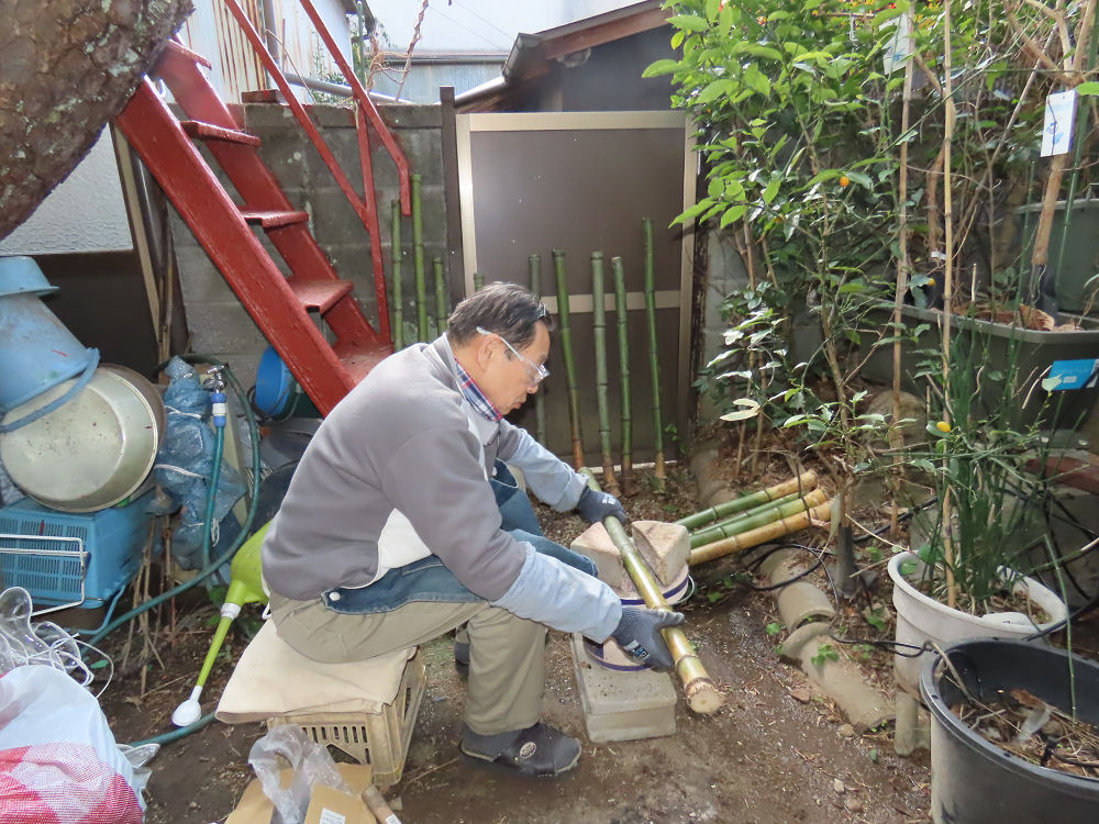 地無し尺八製作(その5)(2026.1.9)竹の根の始末作業