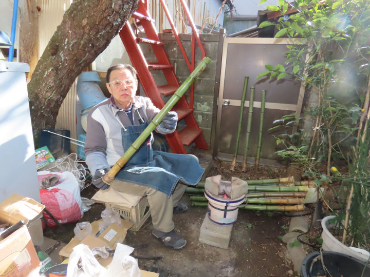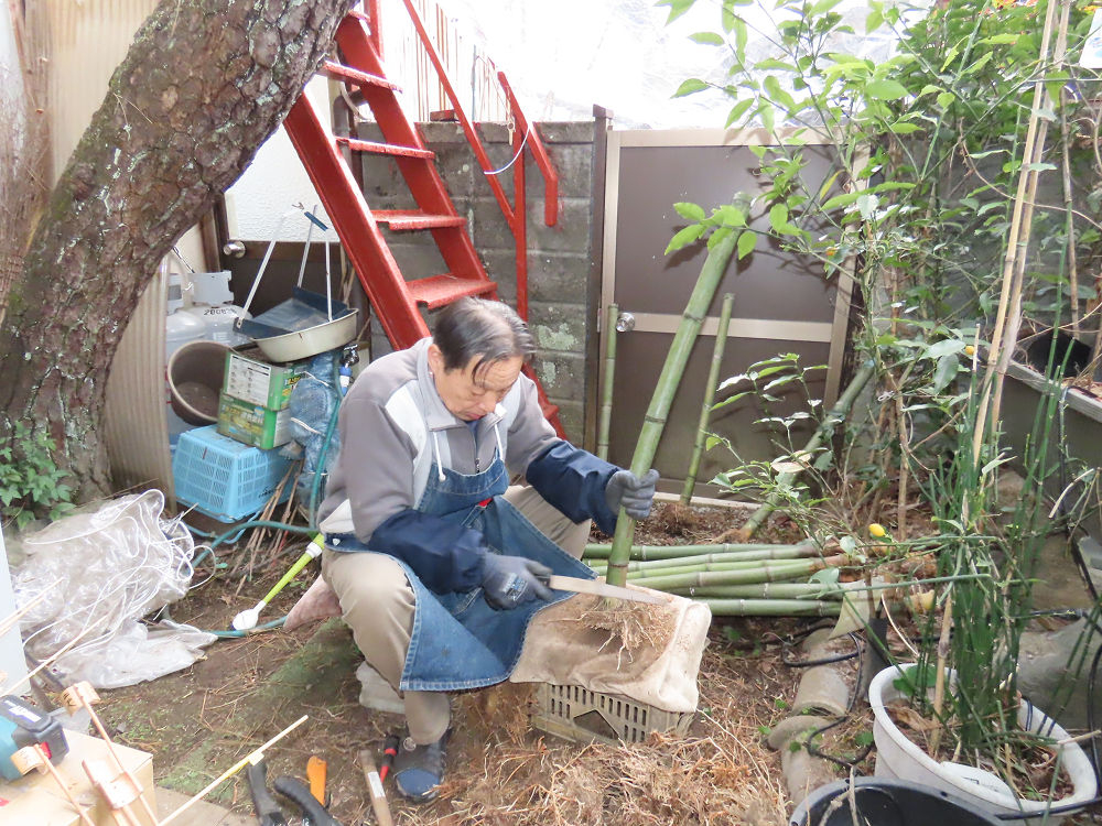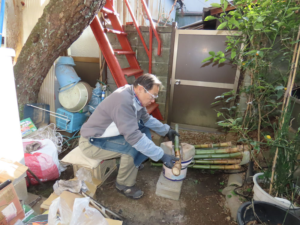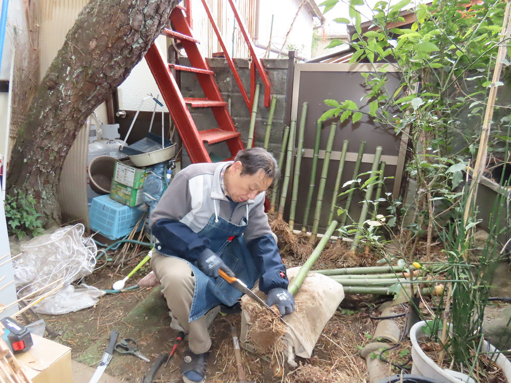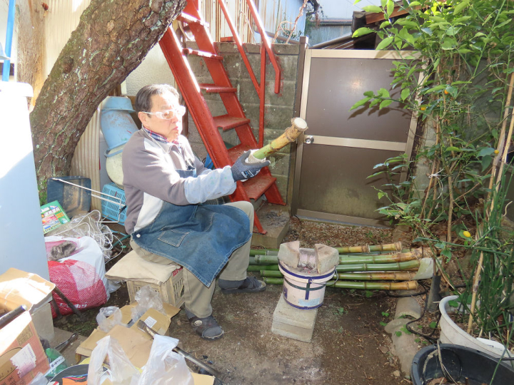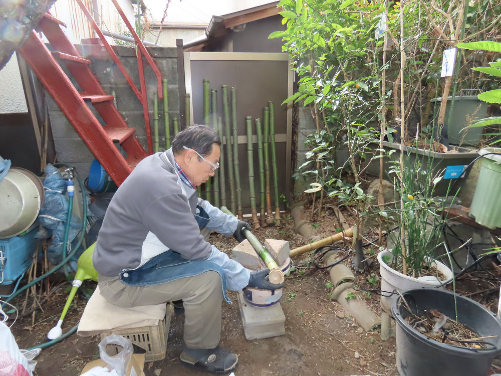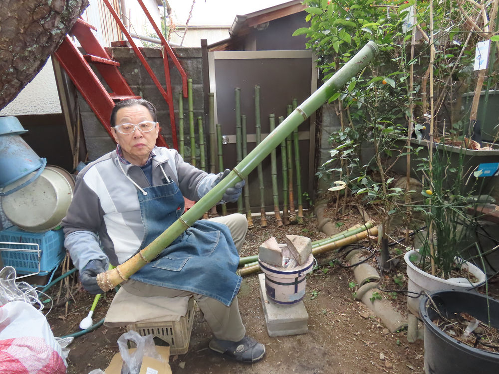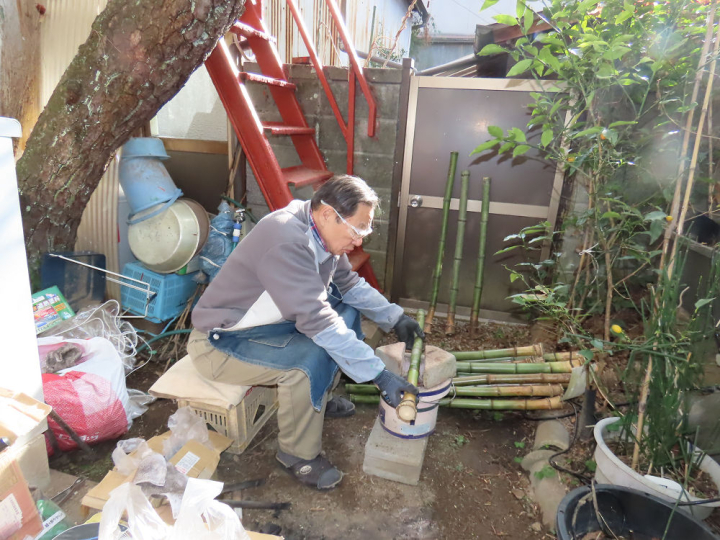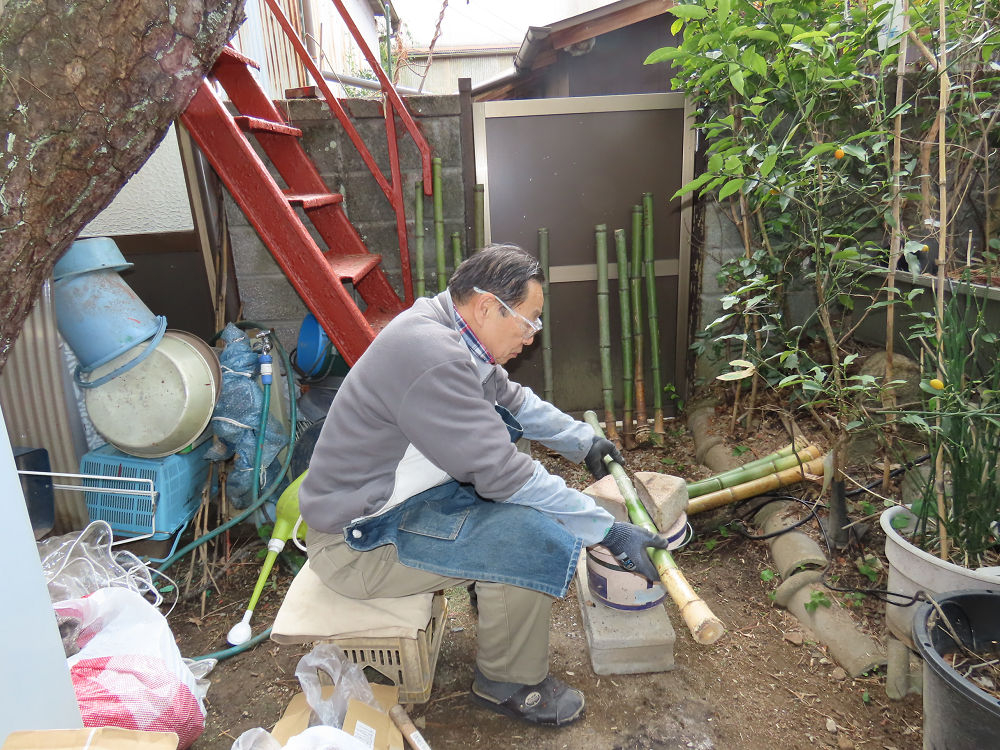 地無し尺八製作(その5)(2026.1.9)竹の根の始末作業