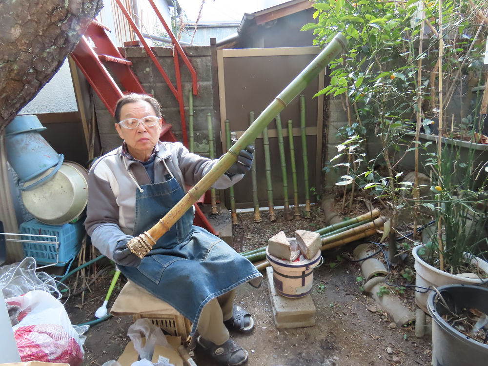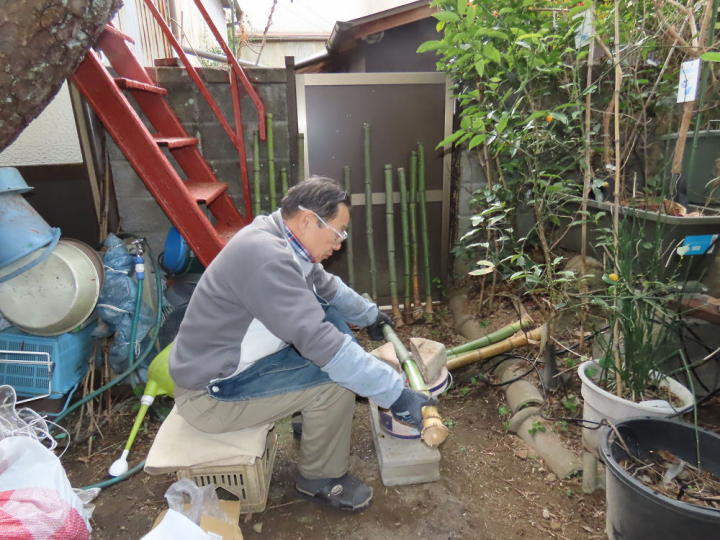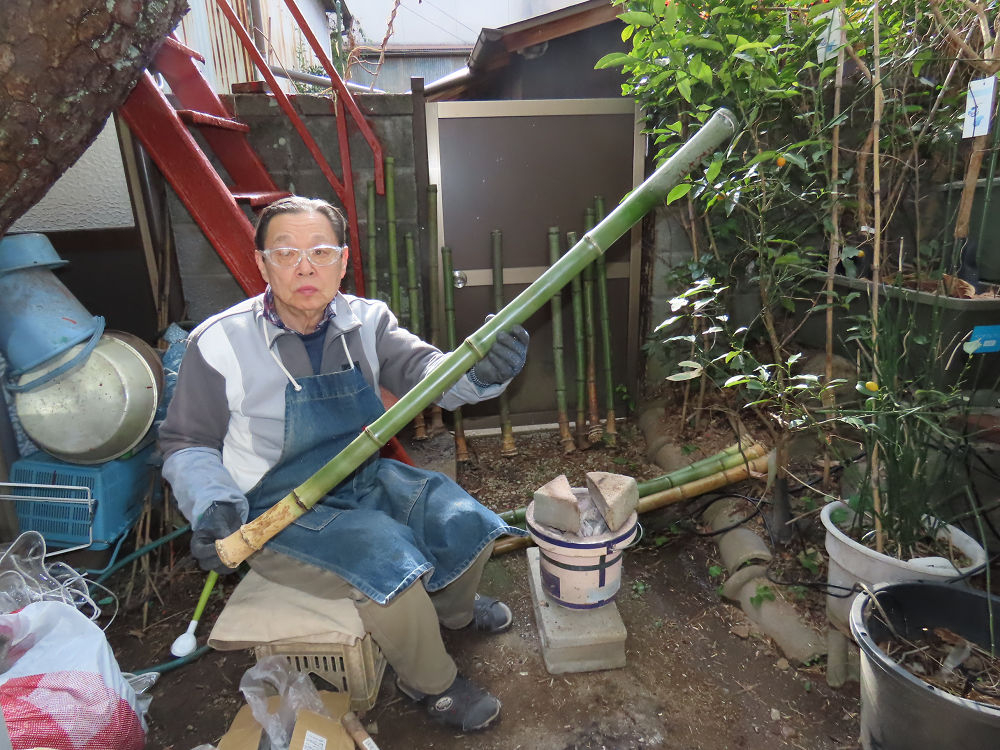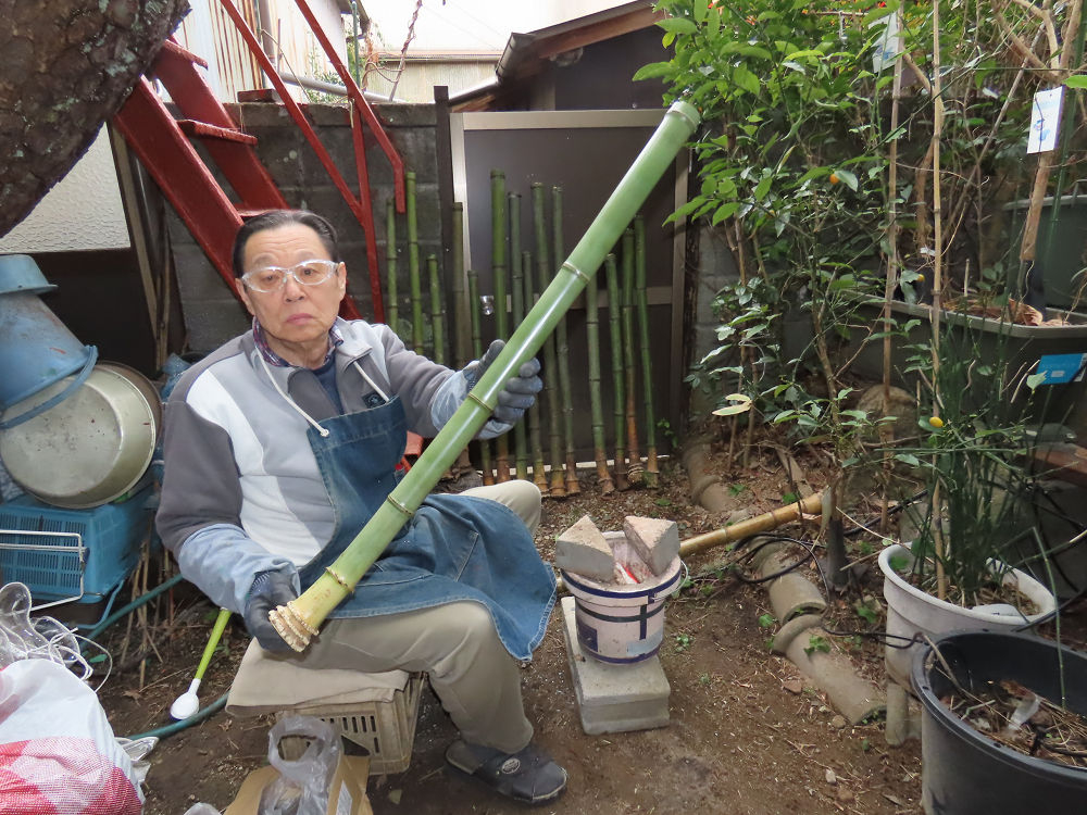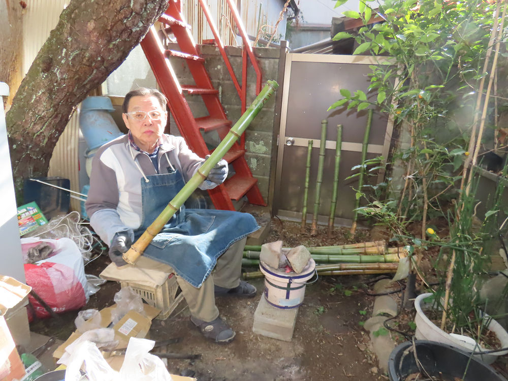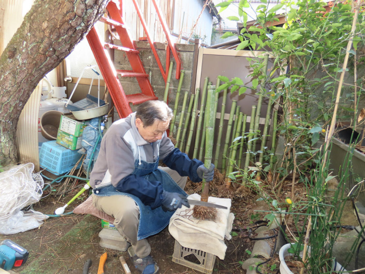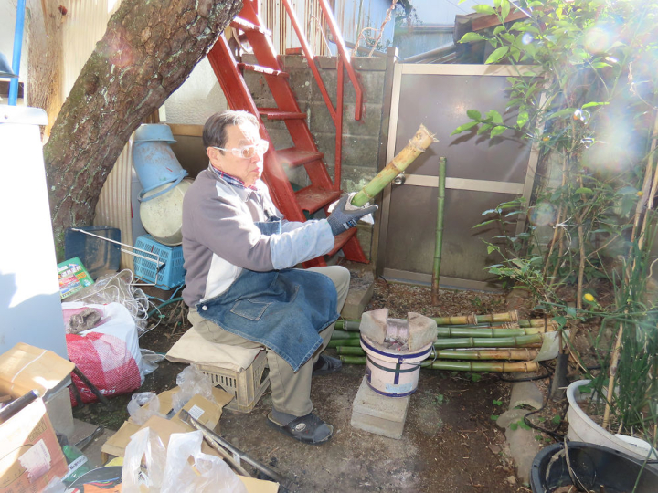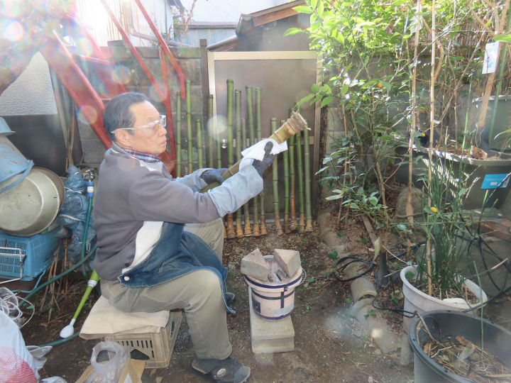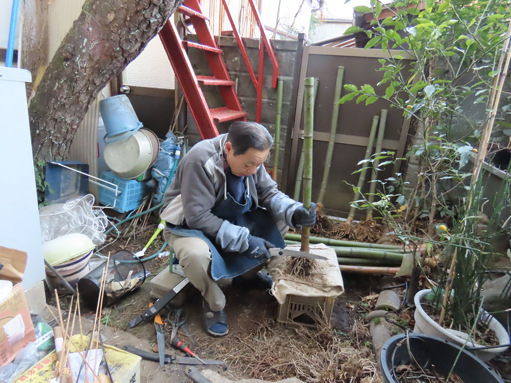 地無し尺八製作(その5)(2026.1.9)竹の根の始末作業
