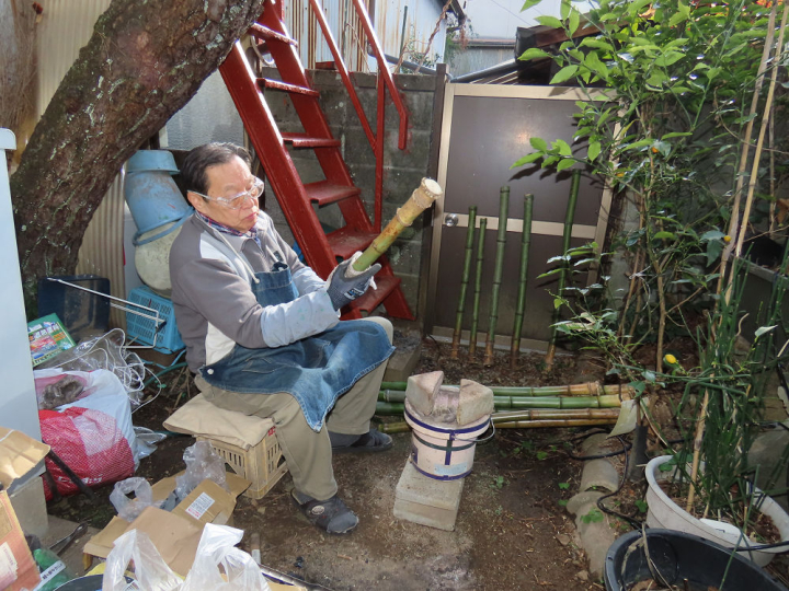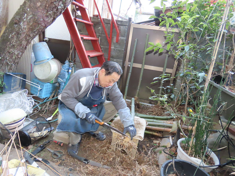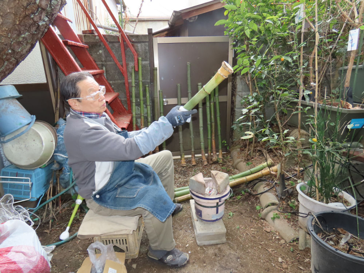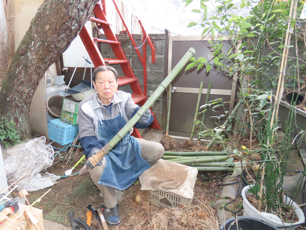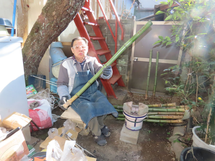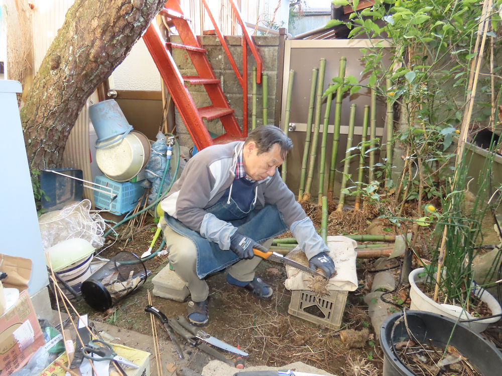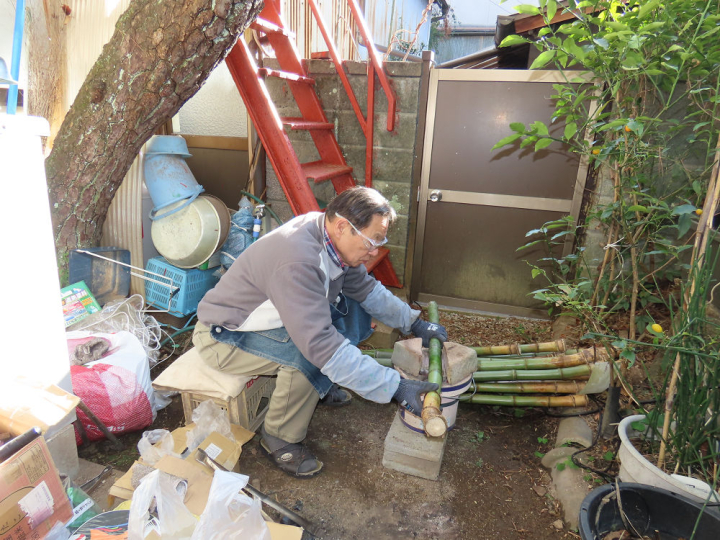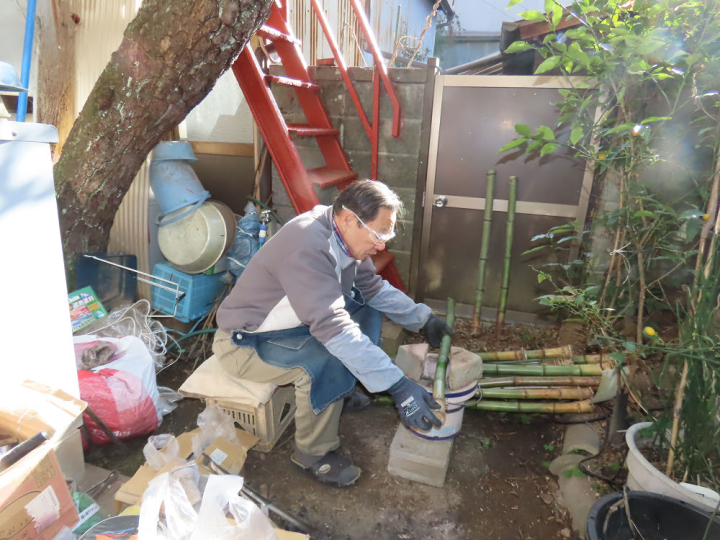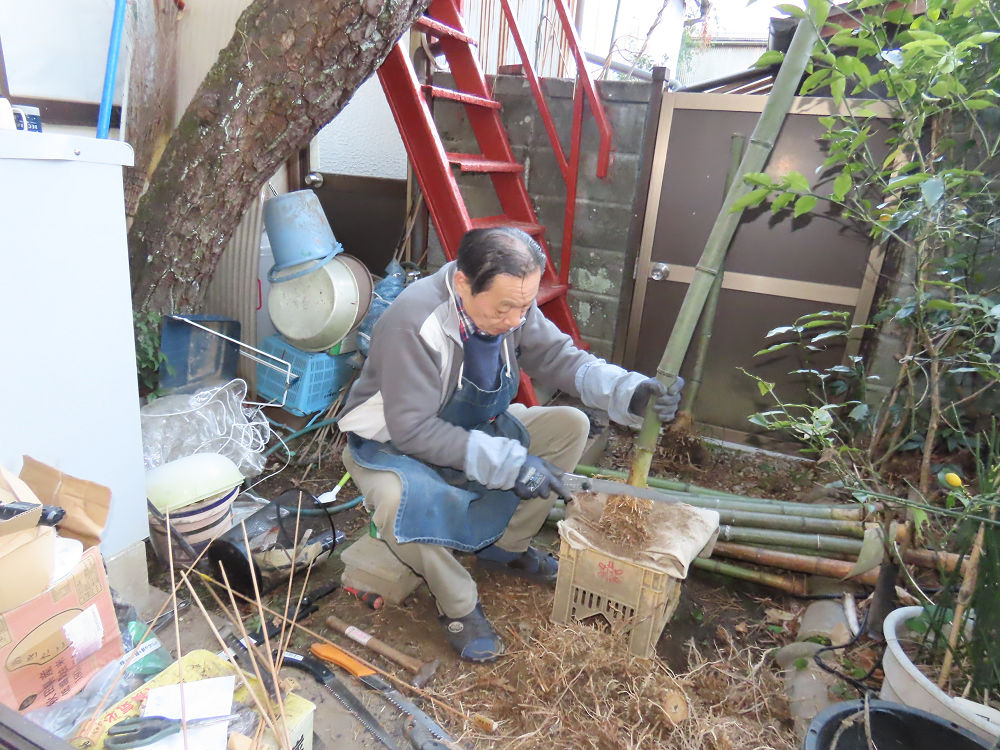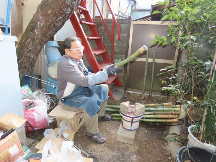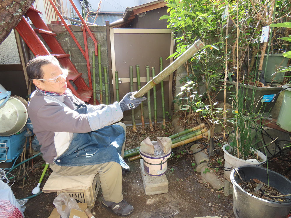 地無し尺八製作(その5)(2026.1.9)竹の根の始末作業