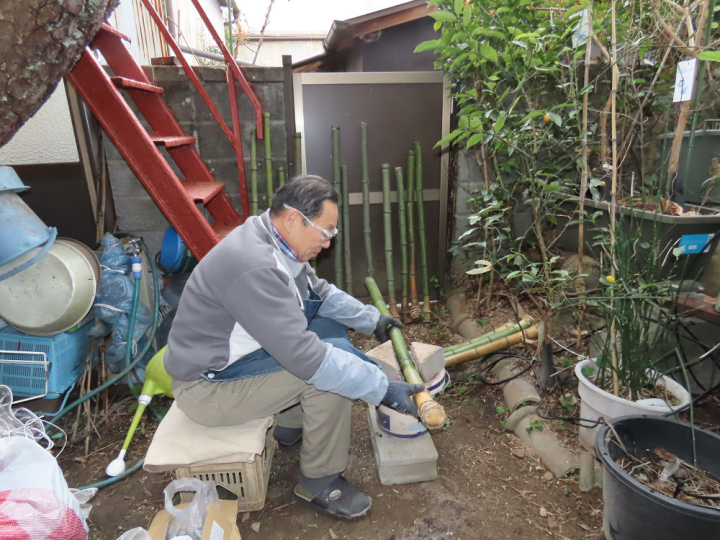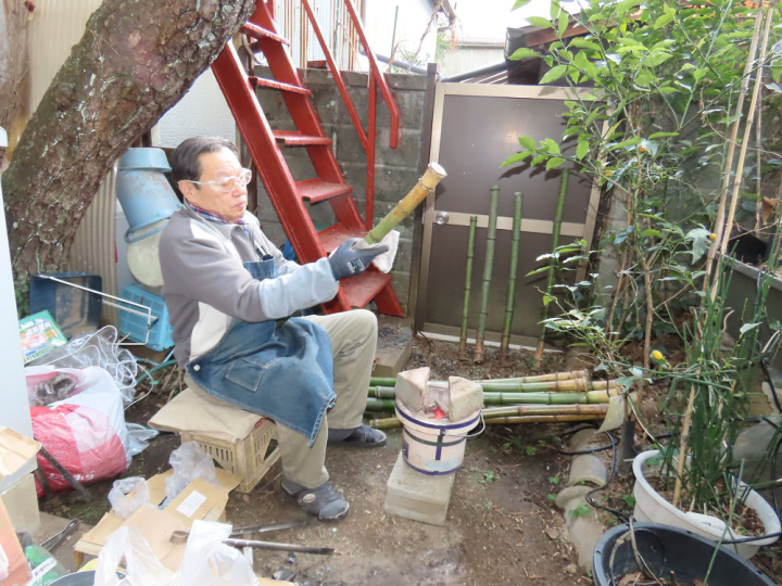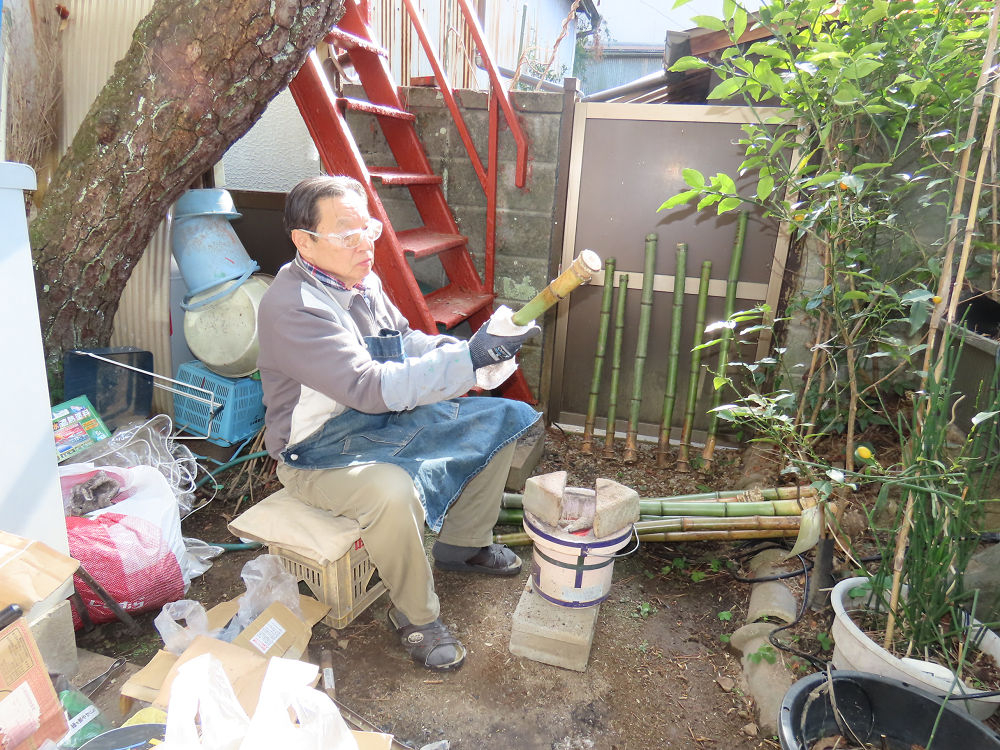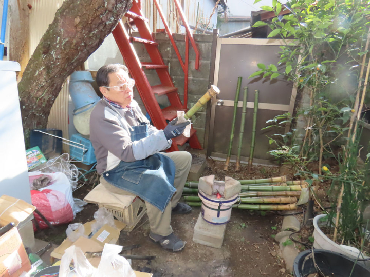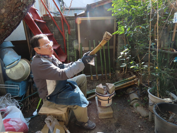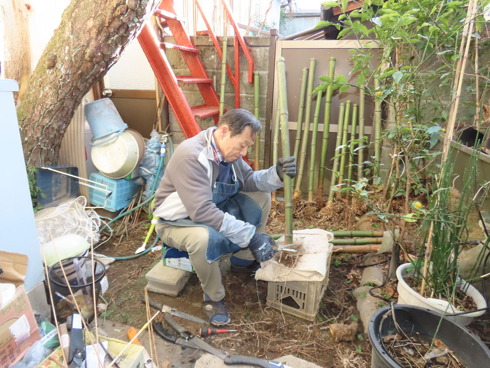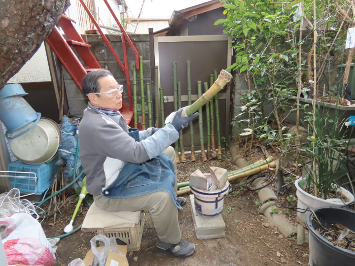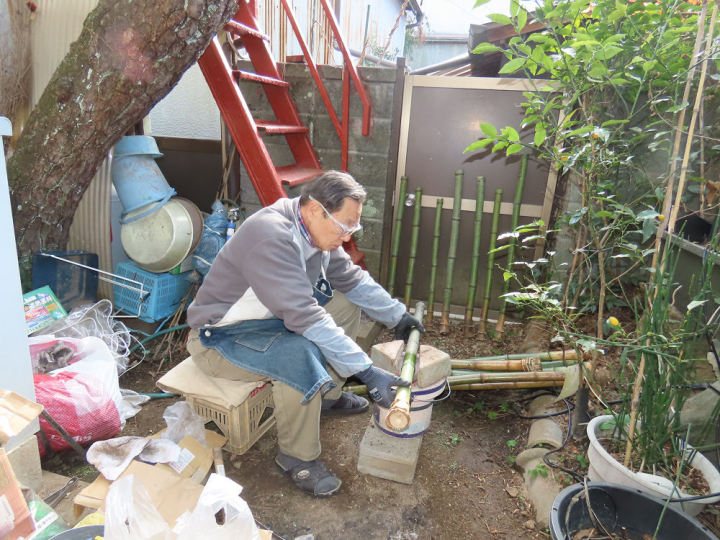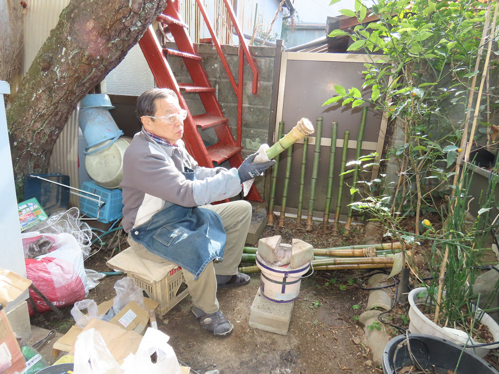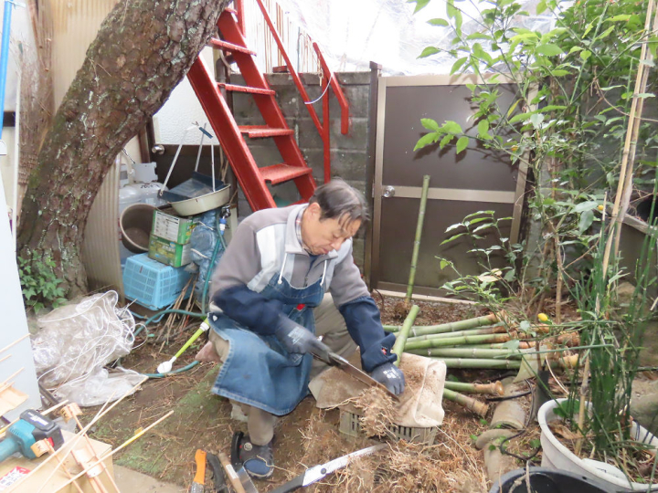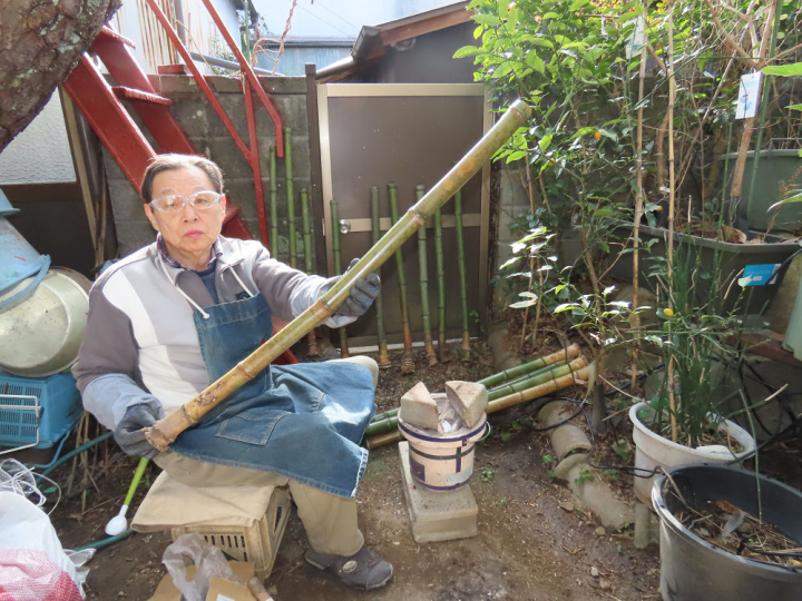 地無し尺八製作(その5)(2026.1.9)竹の根の始末作業