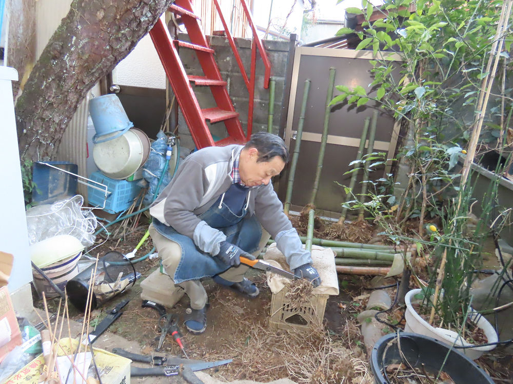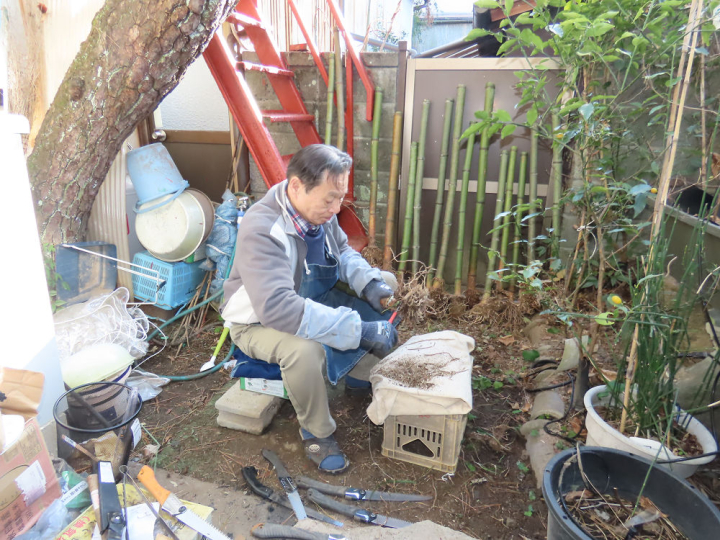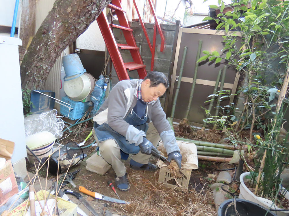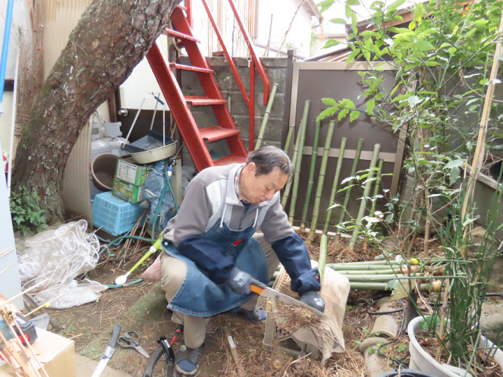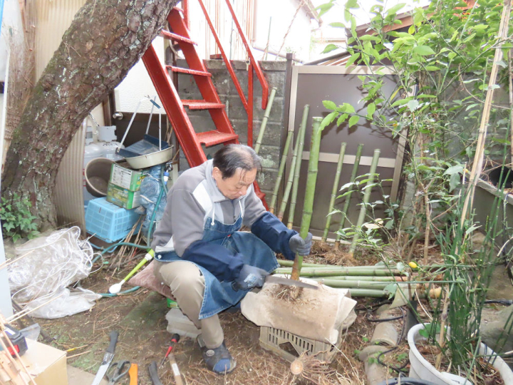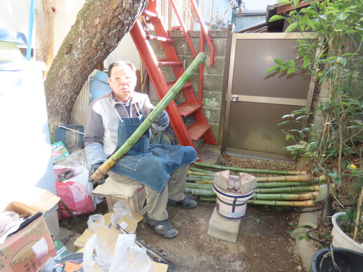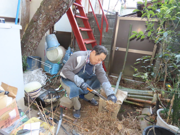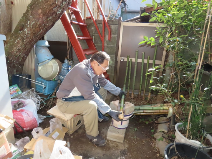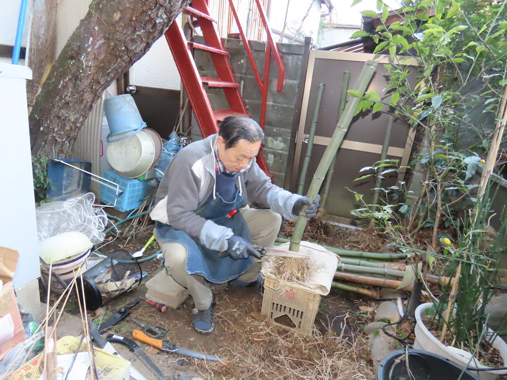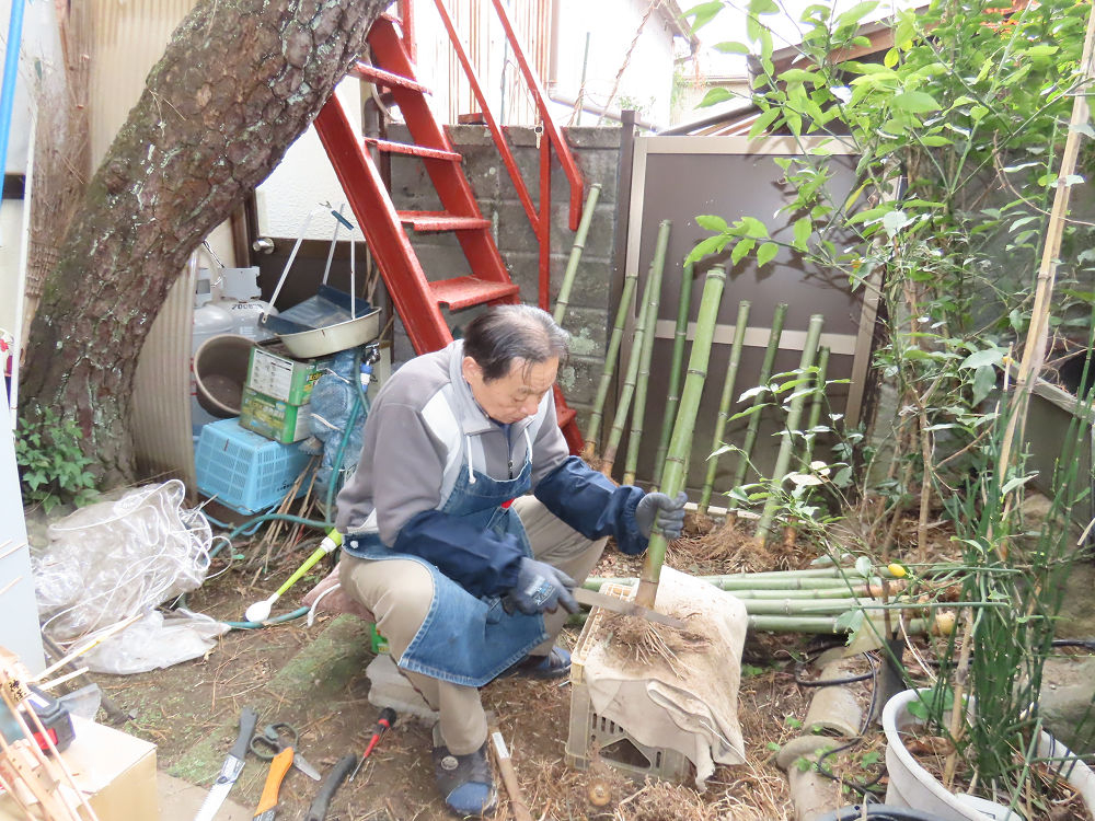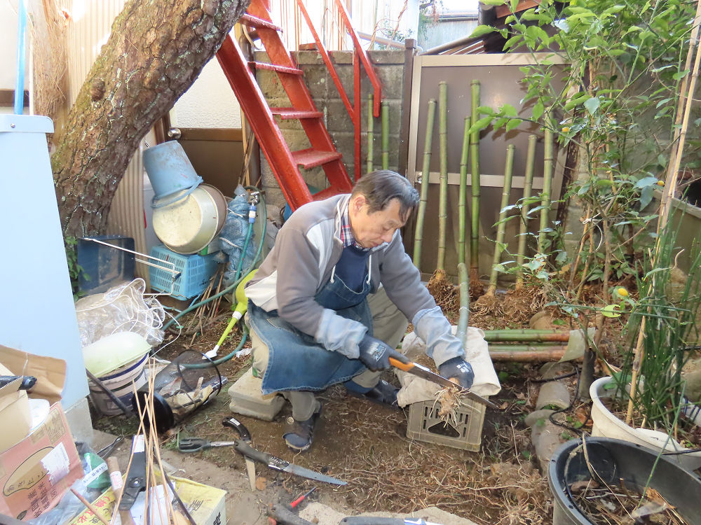 地無し尺八製作(その5)(2026.1.9)竹の根の始末作業