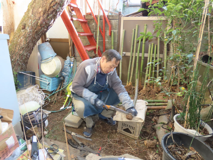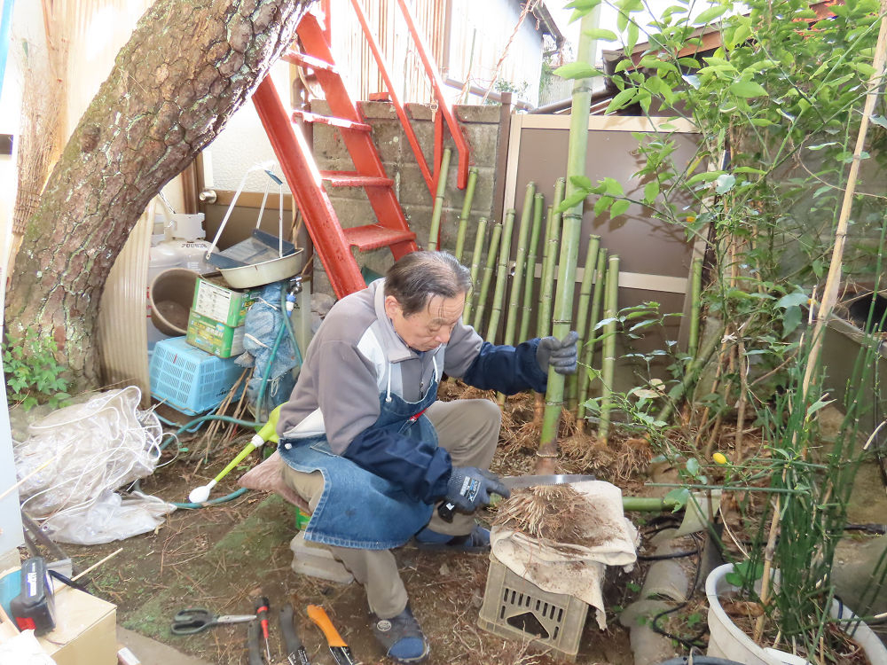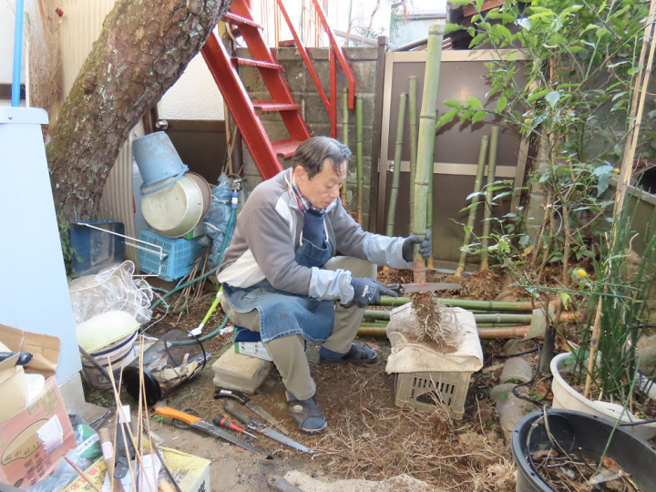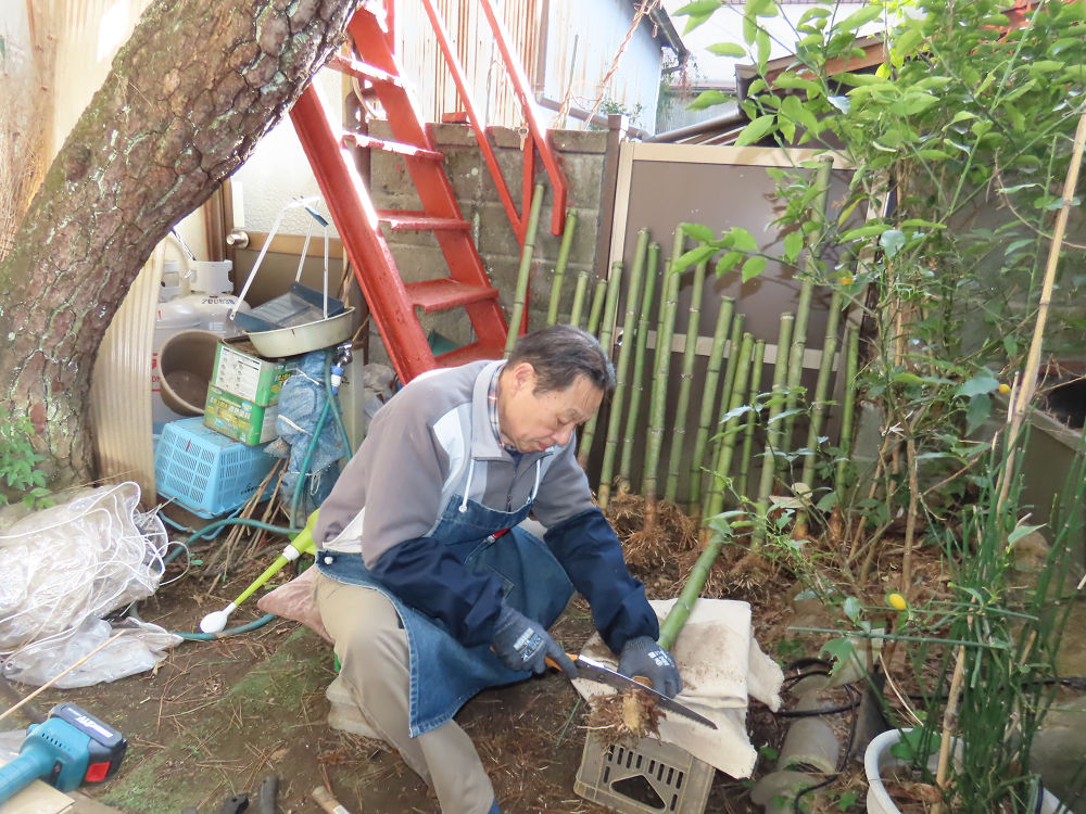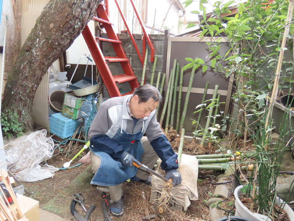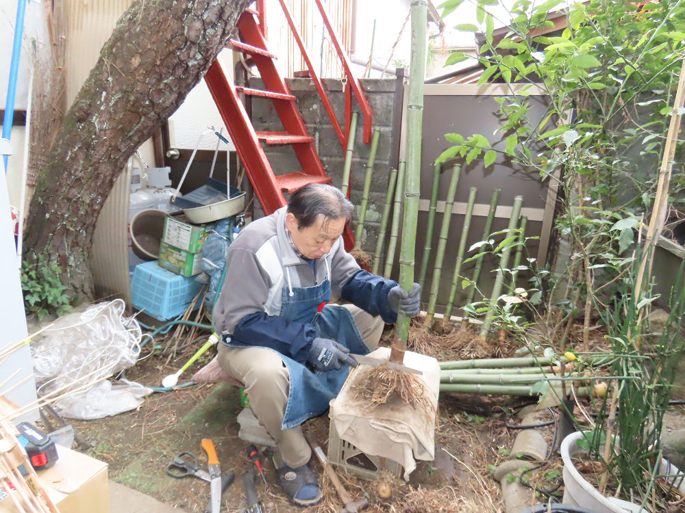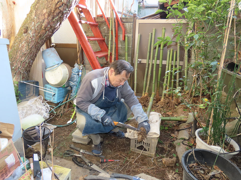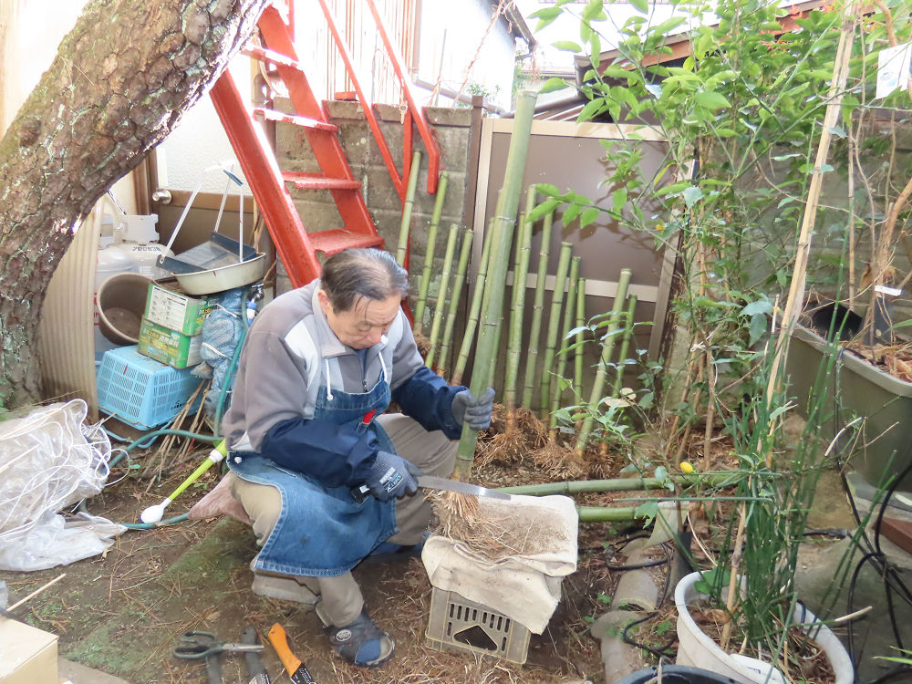 地無し尺八製作(その11)(2026.1.15)竹の根切り作業
