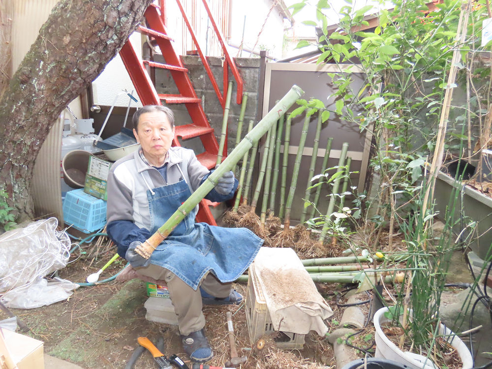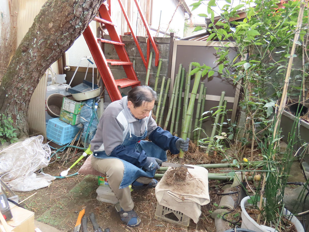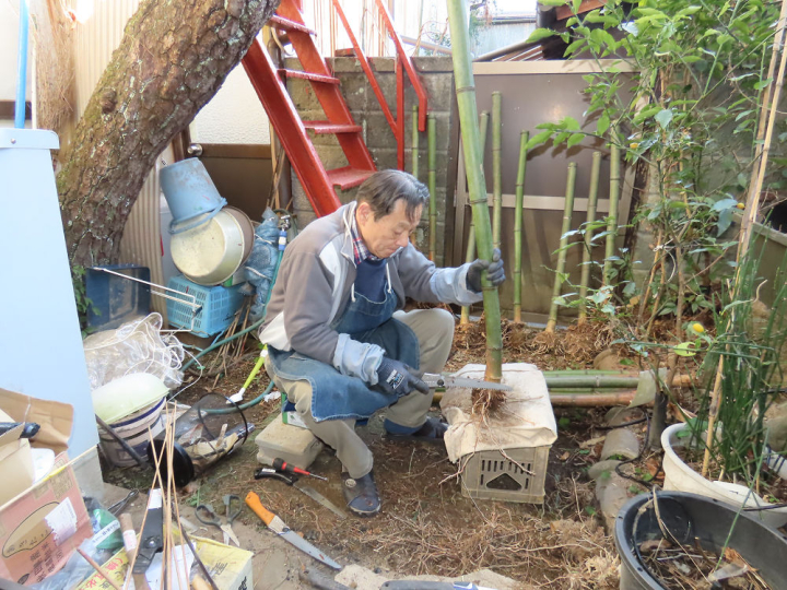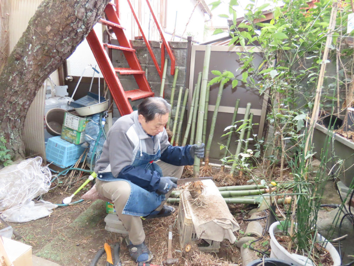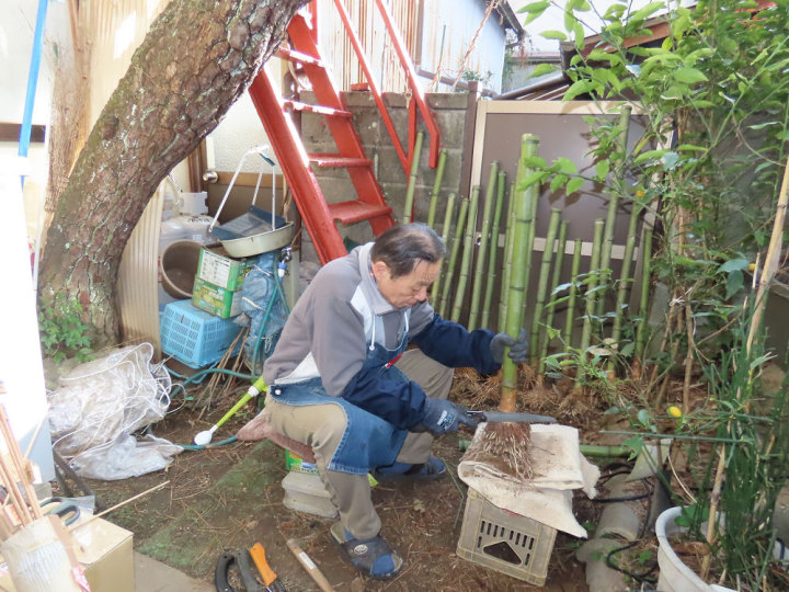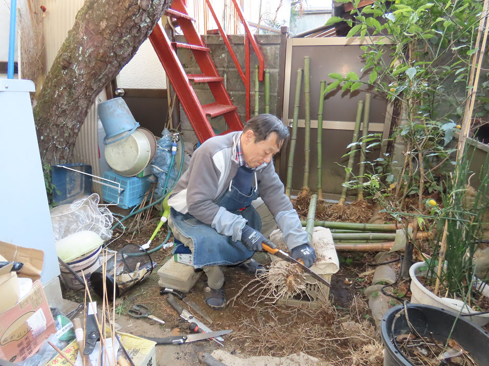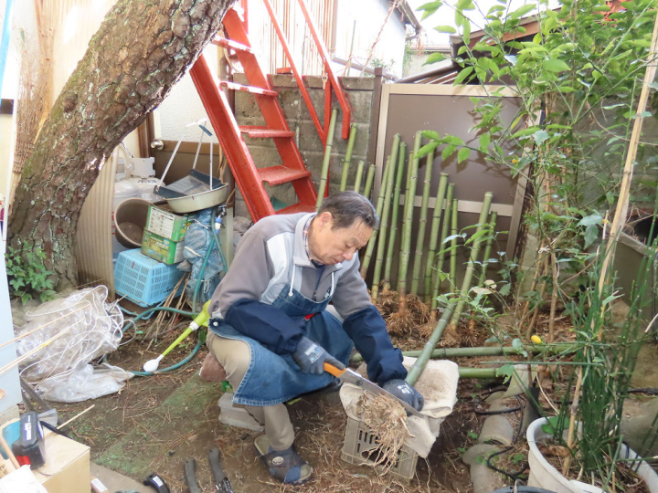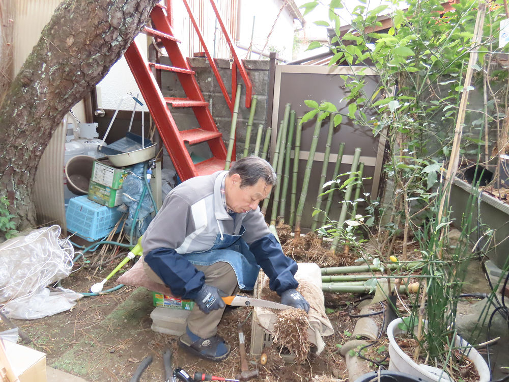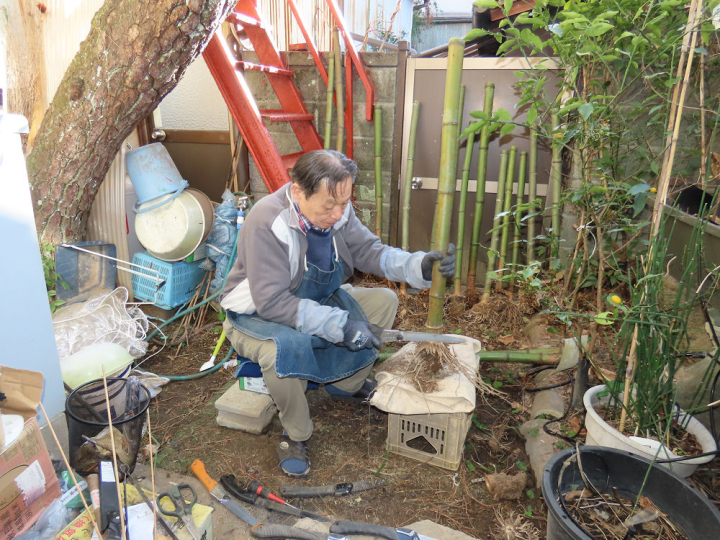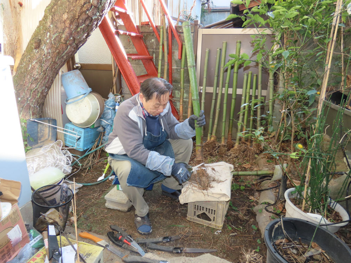 地無し尺八製作(その11)(2026.1.15)竹の根切り作業