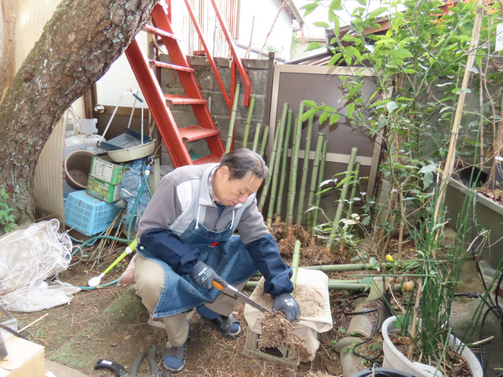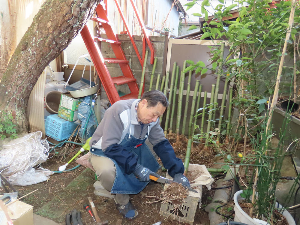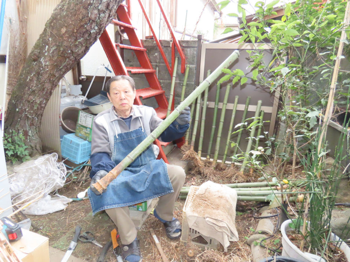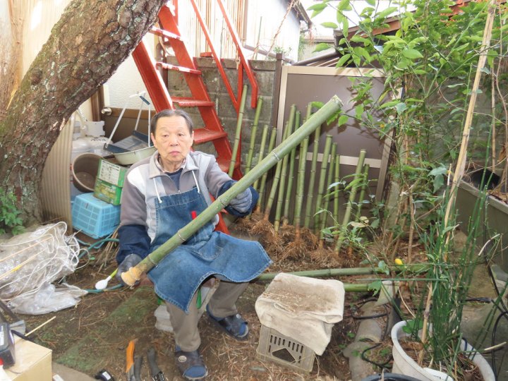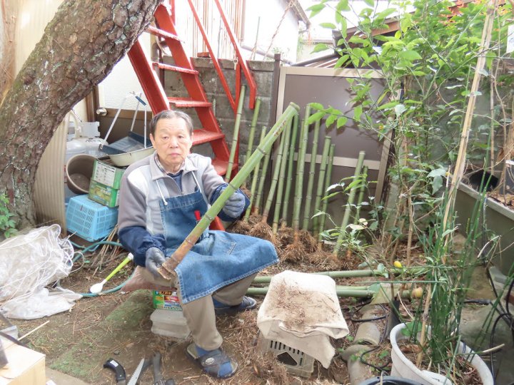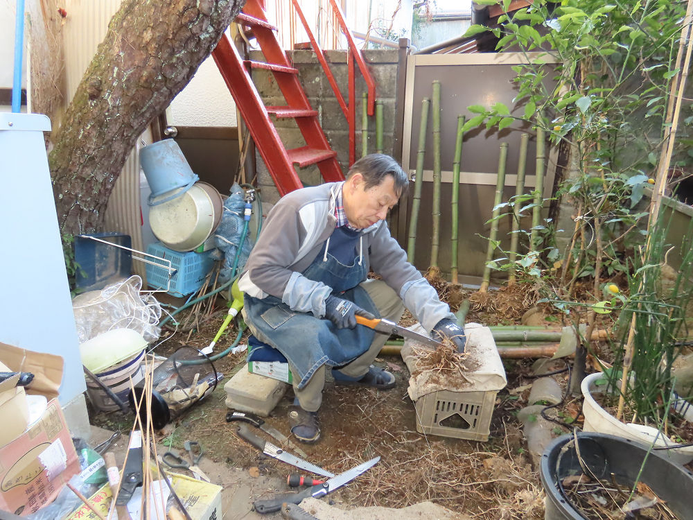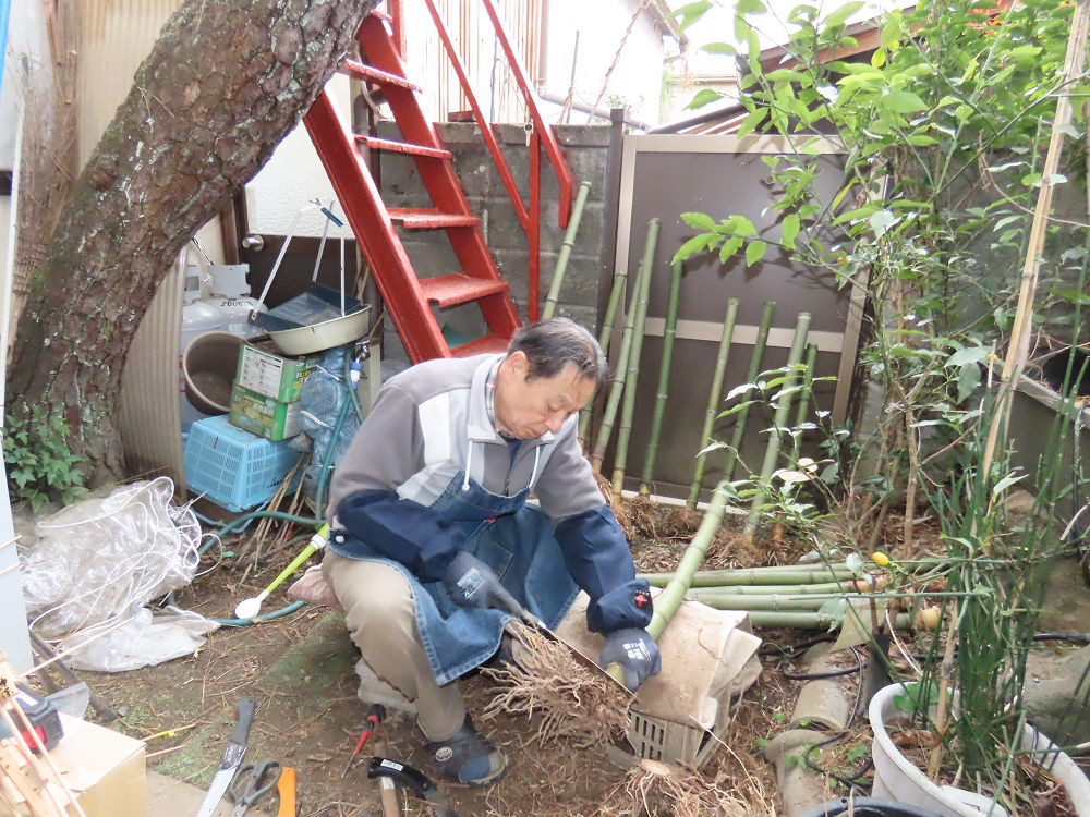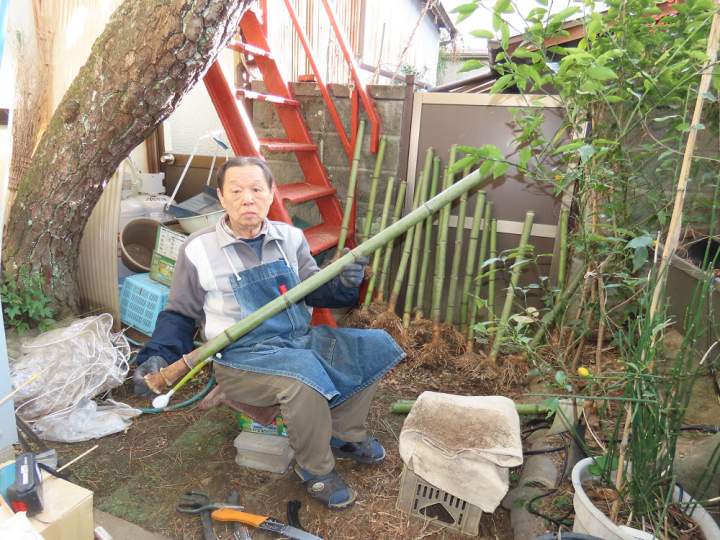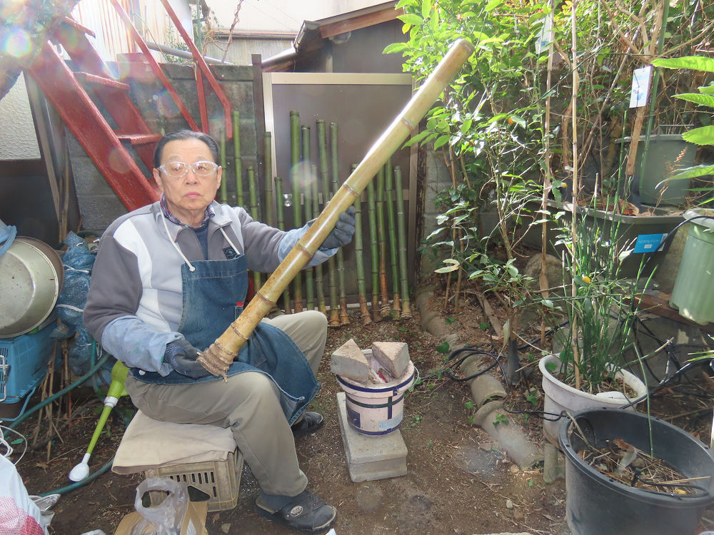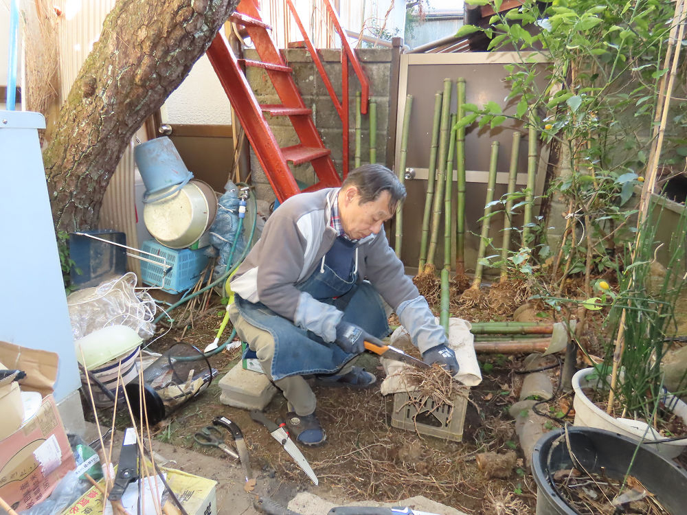 地無し尺八製作(その11)(2026.1.15)竹の根切り作業
