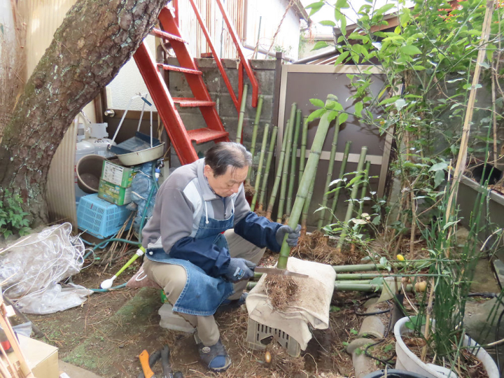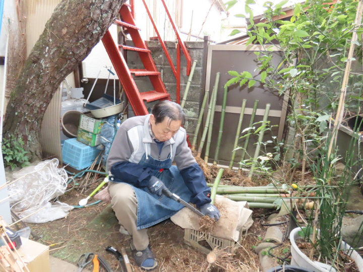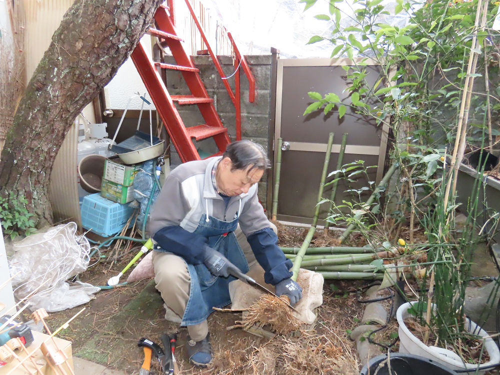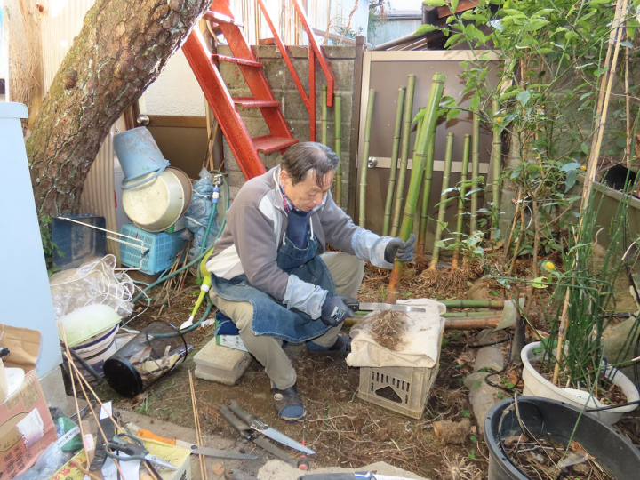 地無し尺八製作(その2)(2026.1.9)竹の根の始末作業