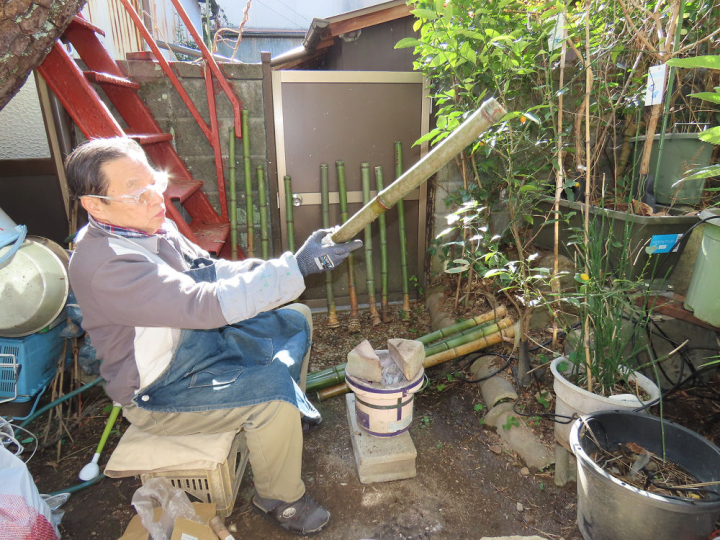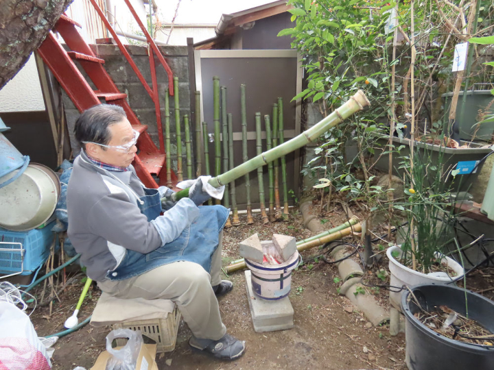 地無し尺八製作(その4)(2026.1.10)竹の油抜き作業