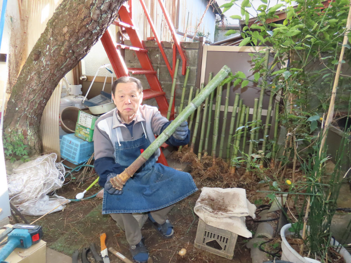 地無し尺八製作(その10)(2026.1.15)竹の根切り作業