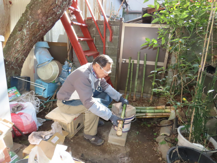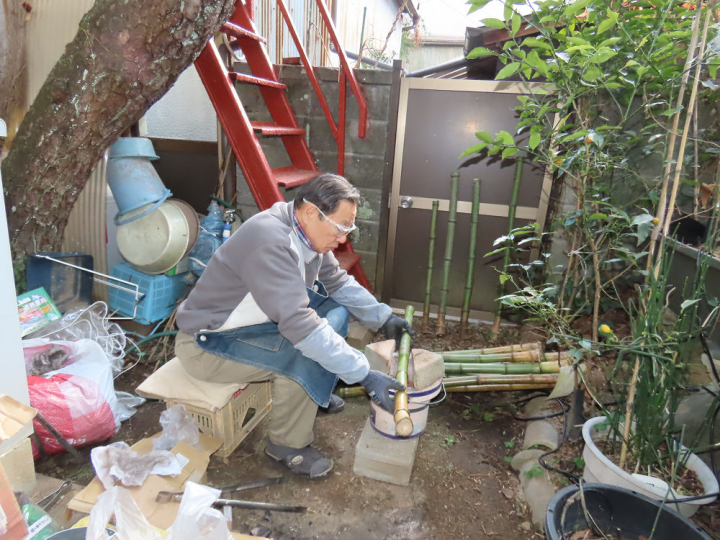 地無し尺八製作(その1)(2026.1.9)竹の根の始末作業