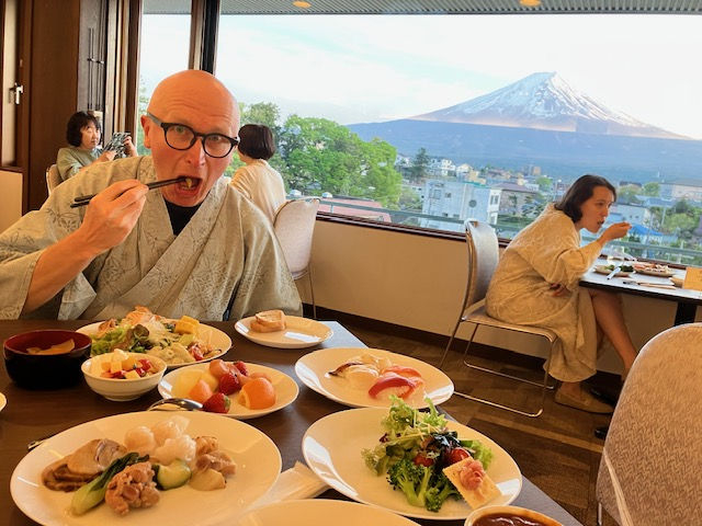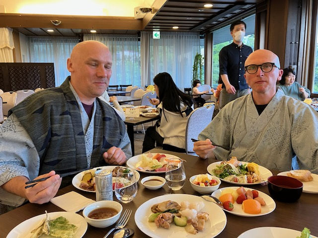 4月27日にポーランド・ワルシャワから孫弟子のマルチン氏が来日しました。4月30日・5月1日は弟子のホウジュン氏と3人で山中湖・河口湖・箱根を観光しました。4月30日は富士レークホテルの特別室を予約、部屋の温泉を楽しんでもらいました。夕食は7階のレストランで富士山を眺めながら楽しみました。5月1日は食事の後、箱根に移動して、十国峠の山頂で富士山を背に尺八を吹きました。その後、芦ノ湖に戻り、山のホテルで昼食に和食懐石を食べました。午後3時過ぎに、小田急線、新百合ヶ丘駅まで二人を送りました。明日は午前10時から、3人で尺八稽古を予定しています。