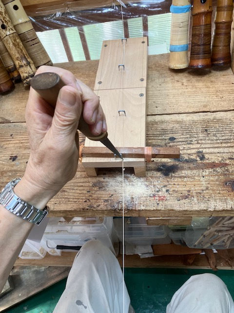 地無し尺八製作(その9)(2025.9.28)2尺9寸管下作り作業