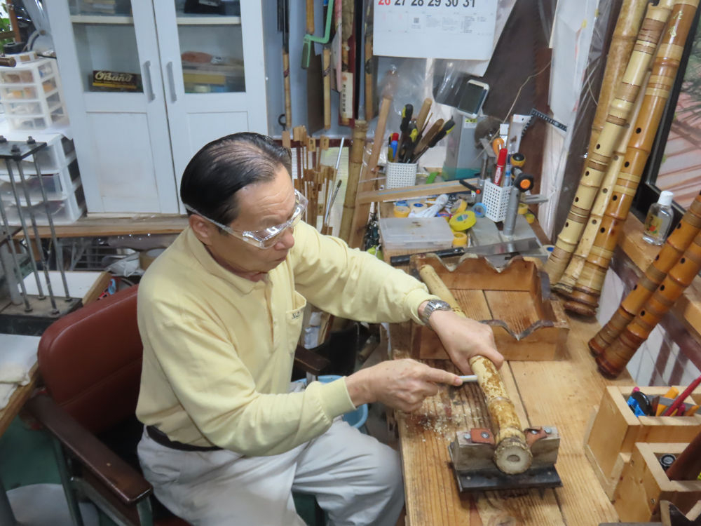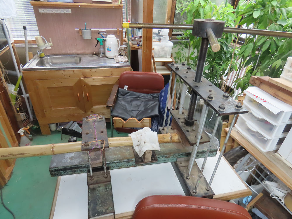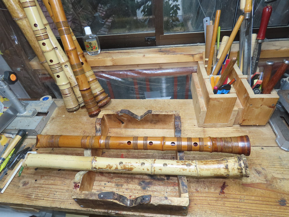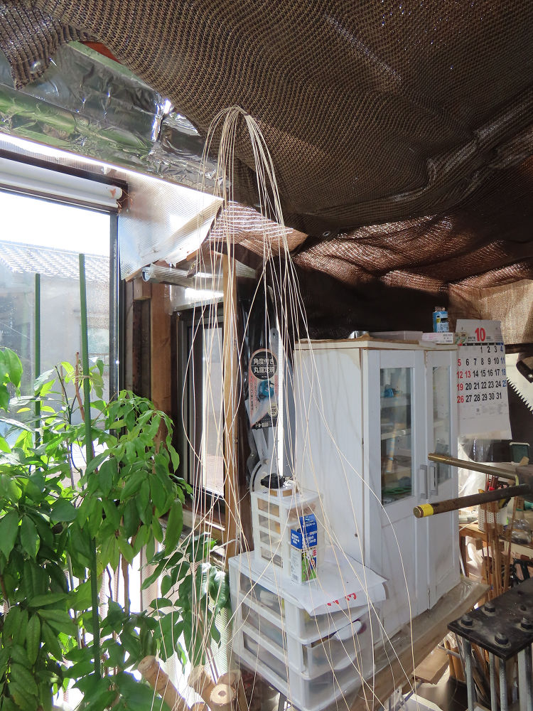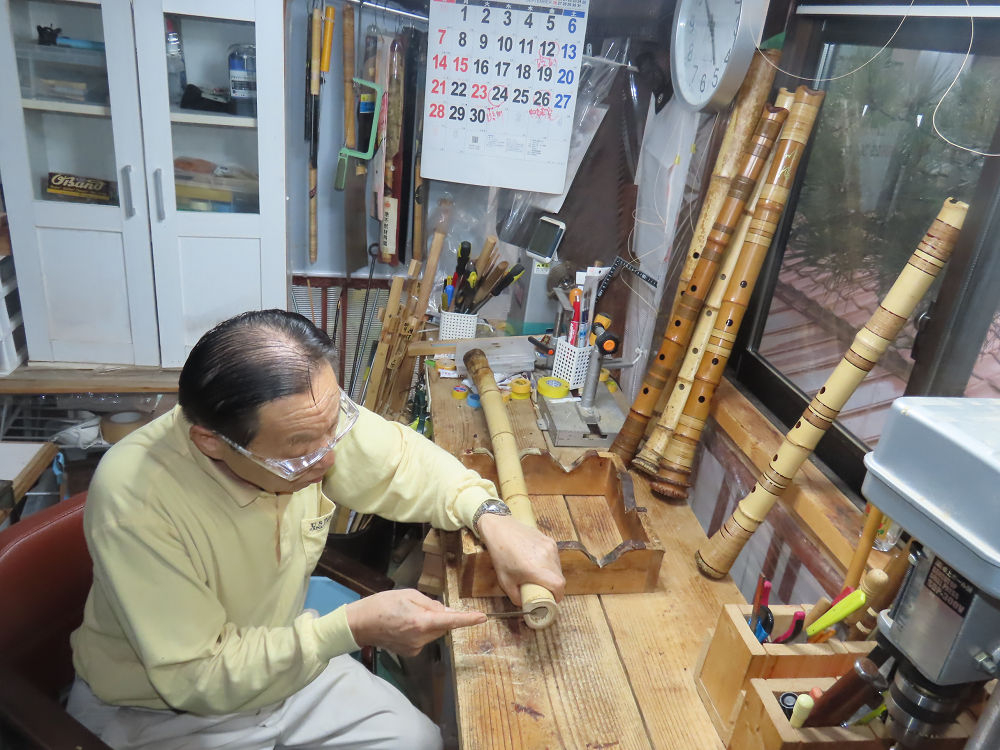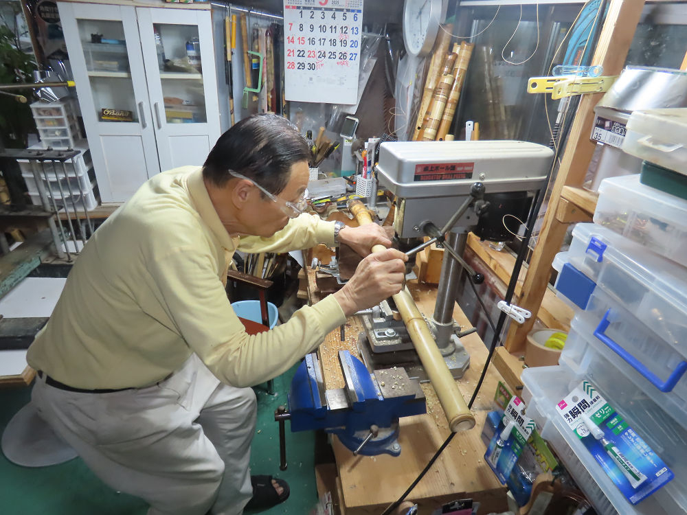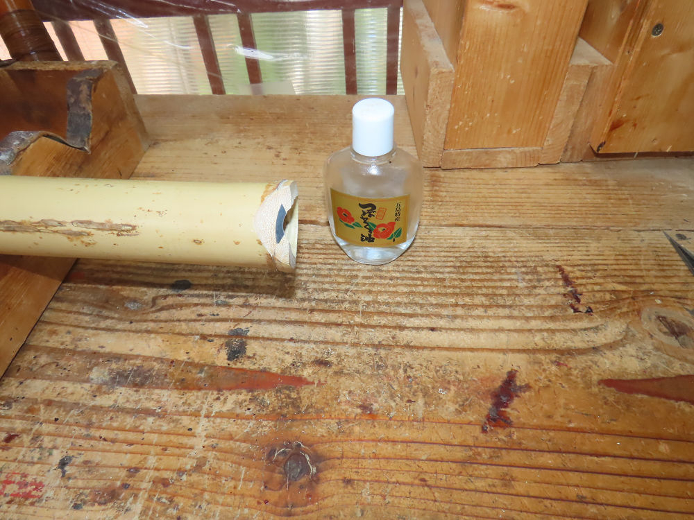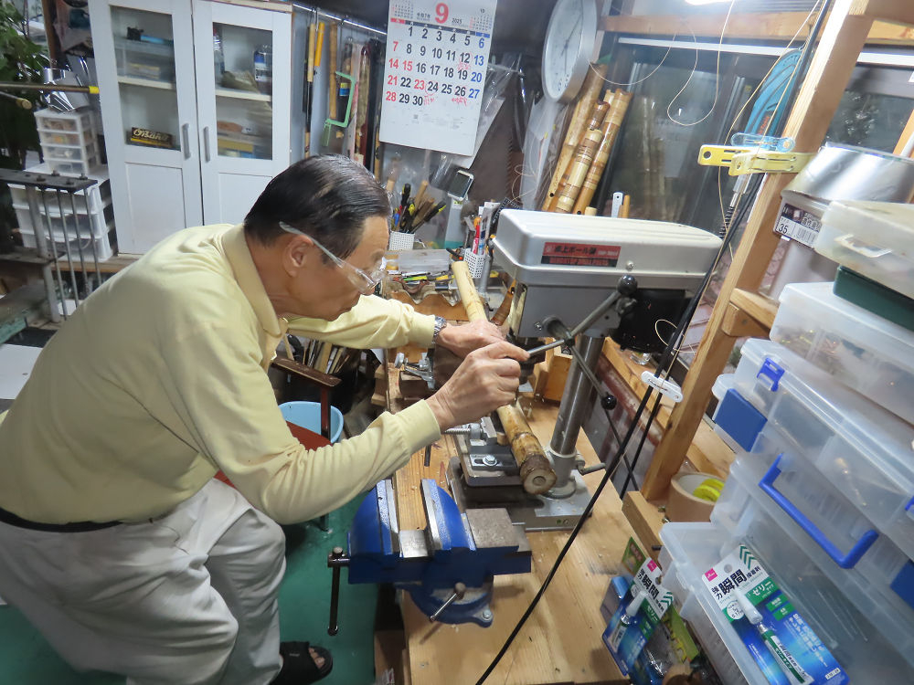 今日は、作業場の観葉植物の床部分のペンキが剥がれていたので、植物を移動して、コンクリート床の塗装をして、午後に乾燥したので、植物をもとに戻しました。その後、新規に2尺9寸管の竹材を用意して、ため直しをした後、節抜き作業、その後、手穴開けまでが完了しました。仕上がり重量が800グラムと、長い曲を吹くには腕が心配になります。門田笛空作の2尺6寸管と同じように、節マタギの尺八になります。みなさんに提供するものは、節間が良い見栄えの良いものを、私の吹き料は3尺をはじめ、節マタギばかりです。今回の2尺9寸も期待ができます。24日に白内障の手術も終わりましたが、まだ保護メガネを寝ているときも着用するようにと眼科医から言われています。幸いに、小さな文字も読めて、老眼鏡は必要ありません。