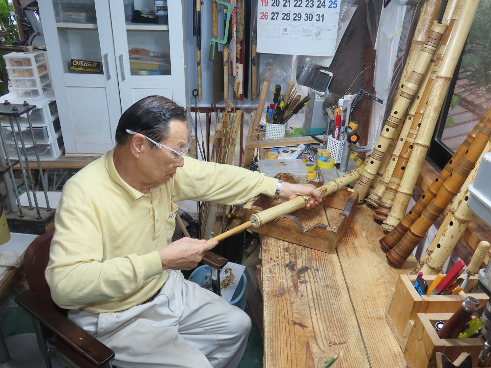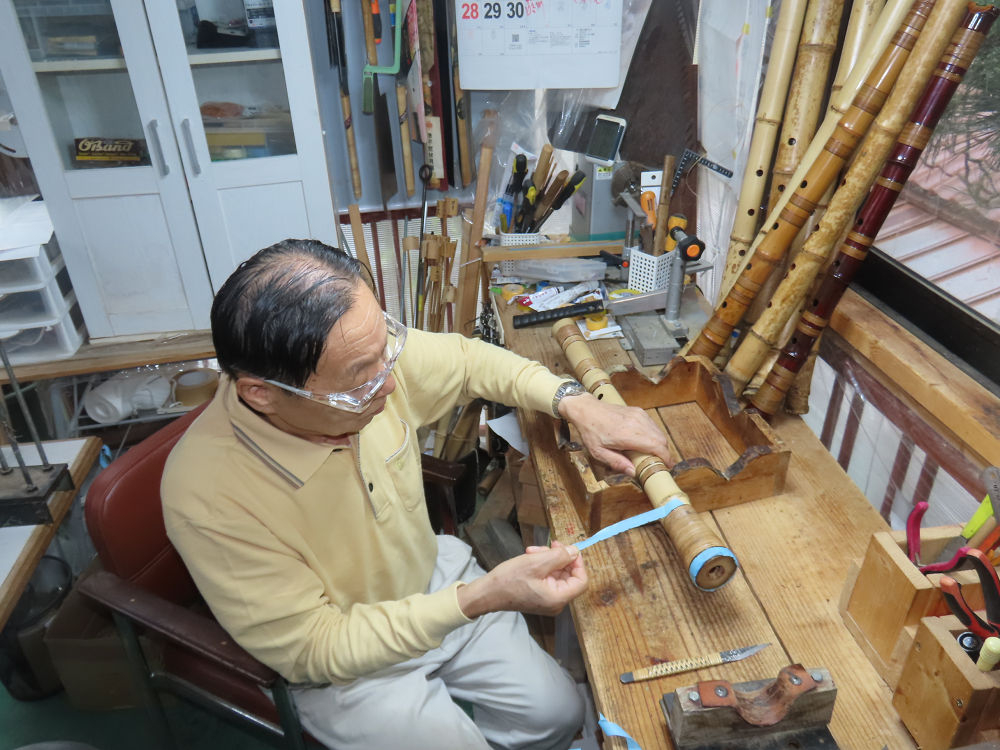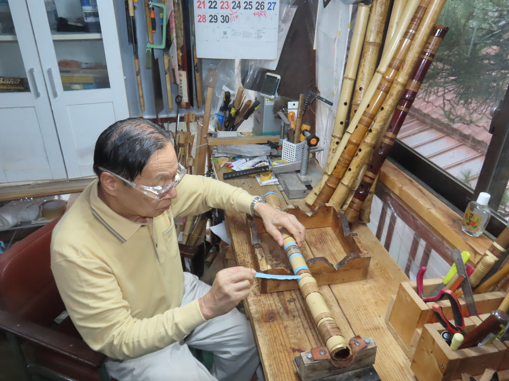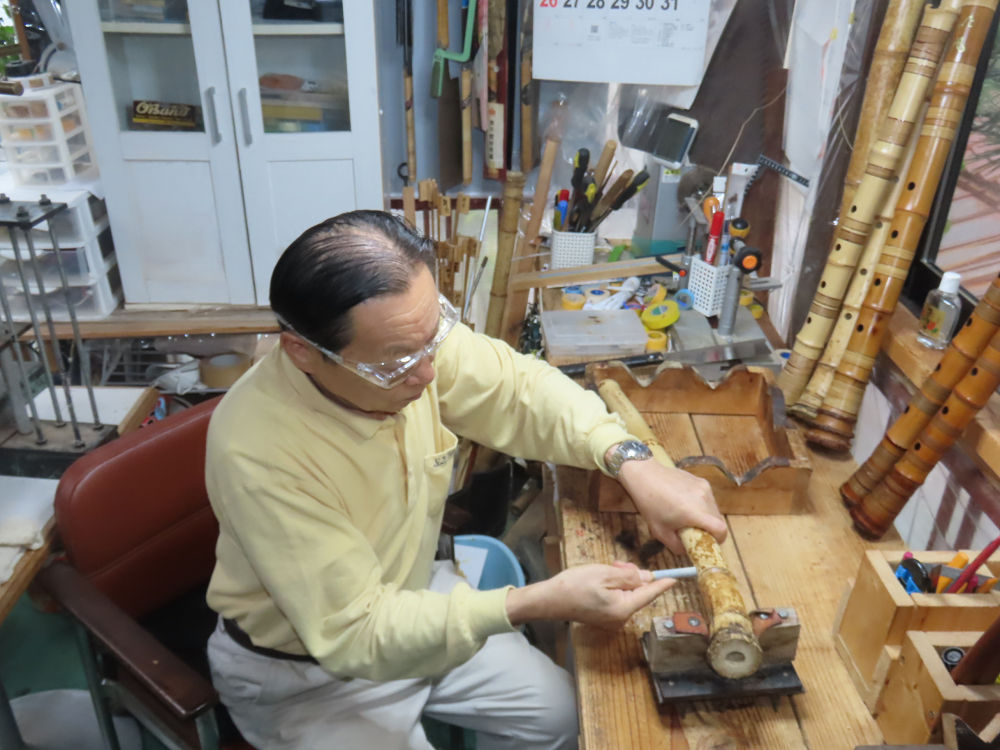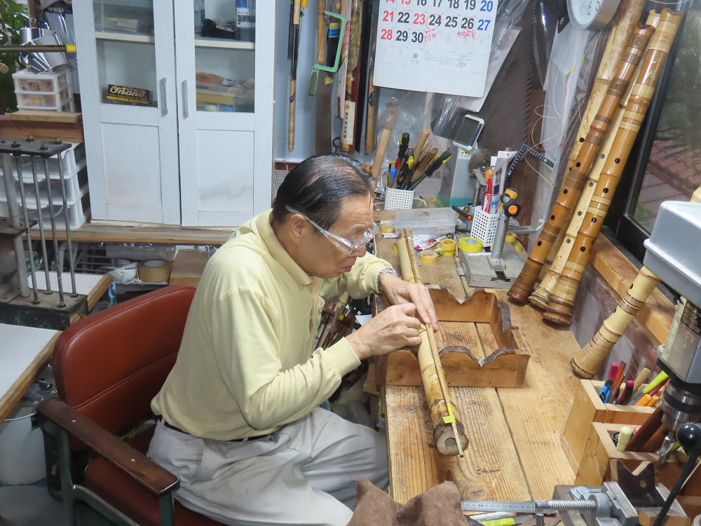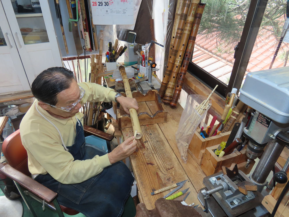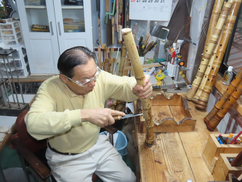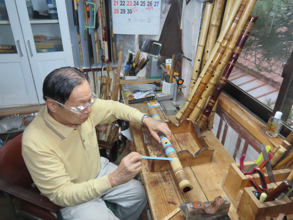 今日は、作業場の観葉植物の床部分のペンキが剥がれていたので、植物を移動して、コンクリート床の塗装をして、午後に乾燥したので、植物をもとに戻しました。その後、新規に2尺9寸管の竹材を用意して、ため直しをした後、節抜き作業、その後、手穴開けまでが完了しました。仕上がり重量が800グラムと、長い曲を吹くには腕が心配になります。門田笛空作の2尺6寸管と同じように、節マタギの尺八になります。みなさんに提供するものは、節間が良い見栄えの良いものを、私の吹き料は3尺をはじめ、節マタギばかりです。今回の2尺9寸も期待ができます。24日に白内障の手術も終わりましたが、まだ保護メガネを寝ているときも着用するようにと眼科医から言われています。幸いに、小さな文字も読めて、老眼鏡は必要ありません。