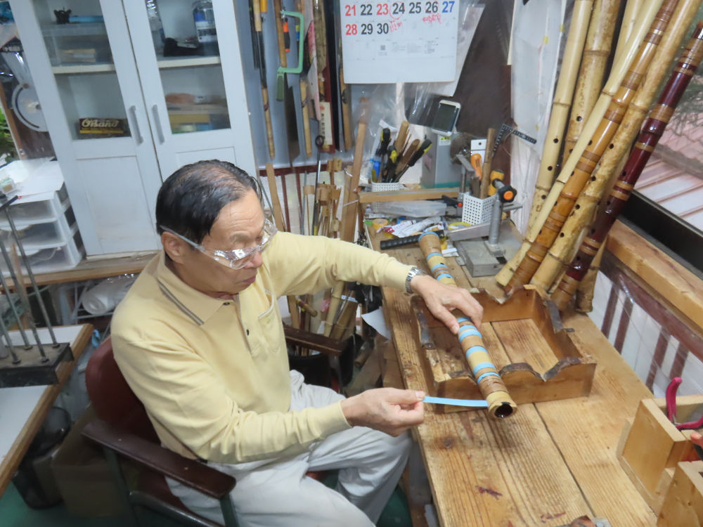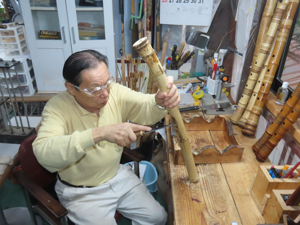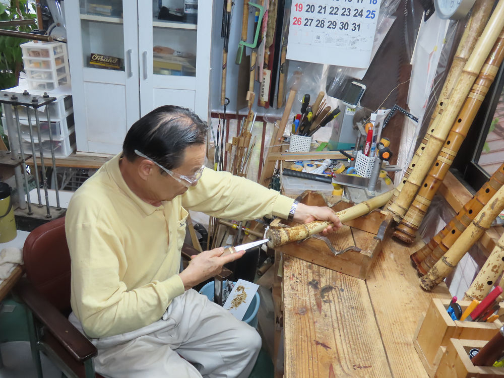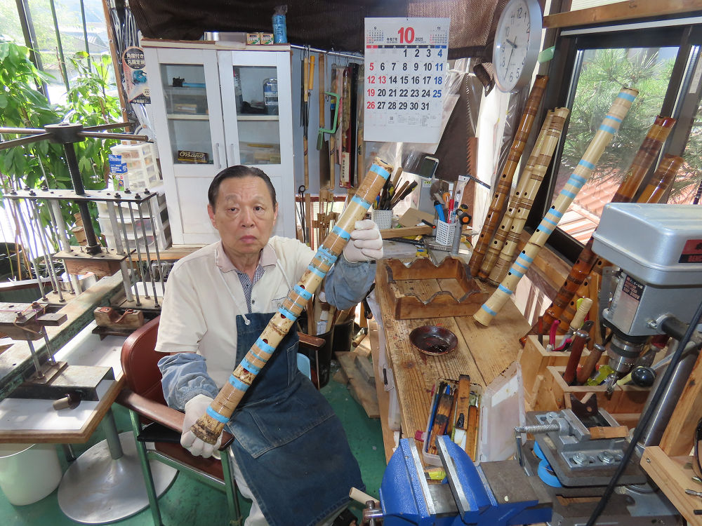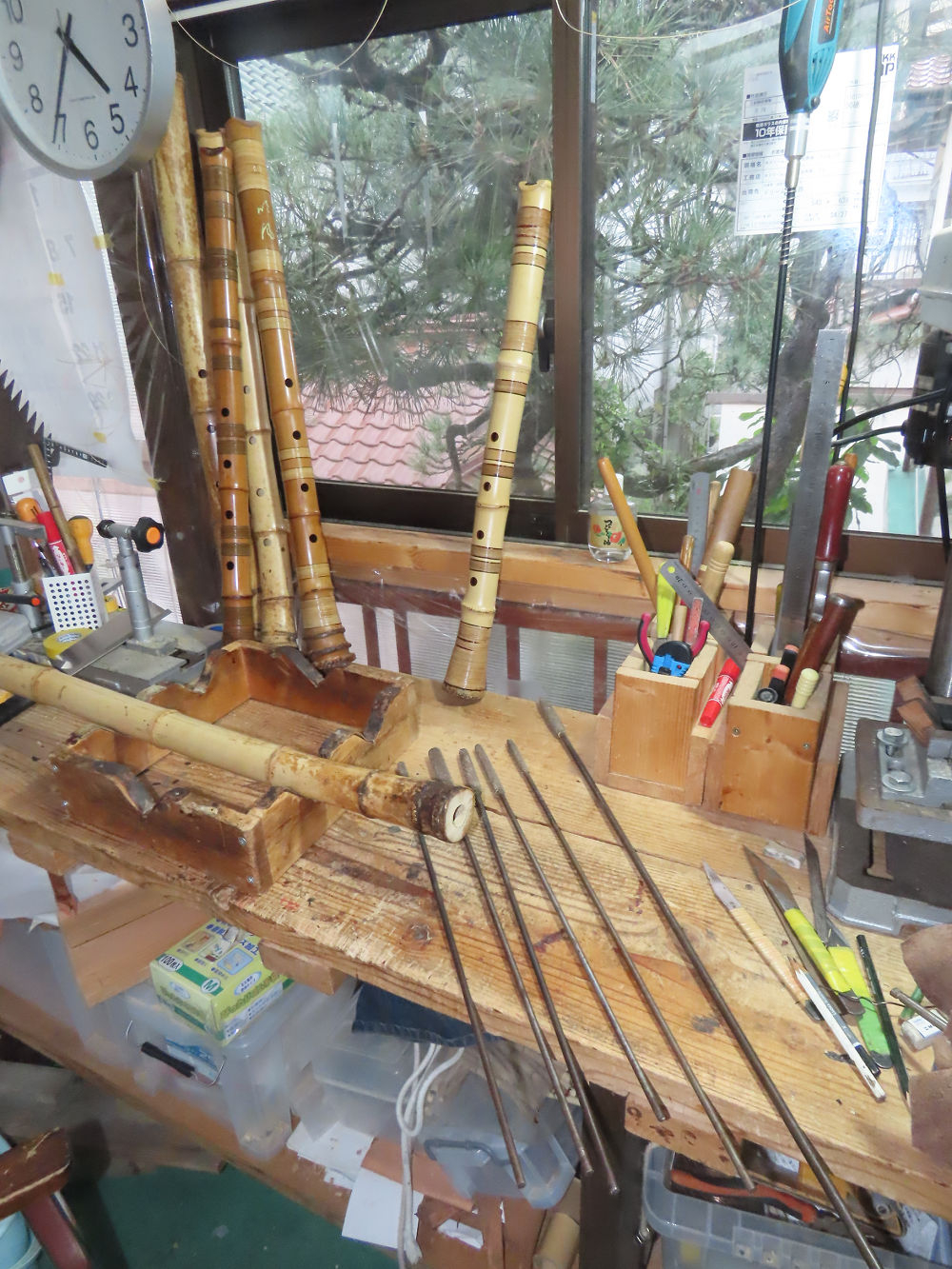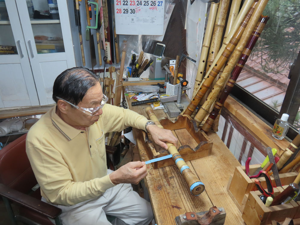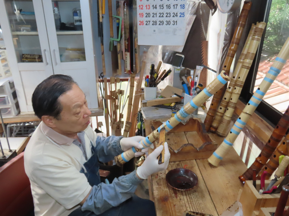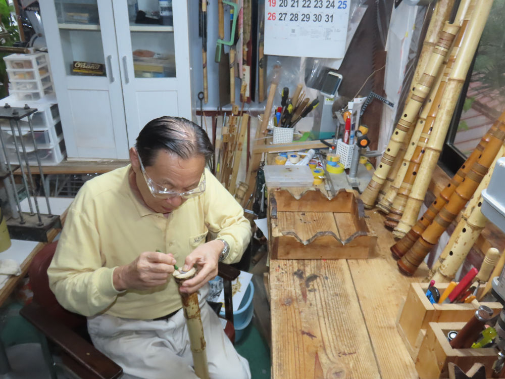 今日は、作業場の観葉植物の床部分のペンキが剥がれていたので、植物を移動して、コンクリート床の塗装をして、午後に乾燥したので、植物をもとに戻しました。その後、新規に2尺9寸管の竹材を用意して、ため直しをした後、節抜き作業、その後、手穴開けまでが完了しました。仕上がり重量が800グラムと、長い曲を吹くには腕が心配になります。門田笛空作の2尺6寸管と同じように、節マタギの尺八になります。みなさんに提供するものは、節間が良い見栄えの良いものを、私の吹き料は3尺をはじめ、節マタギばかりです。今回の2尺9寸も期待ができます。24日に白内障の手術も終わりましたが、まだ保護メガネを寝ているときも着用するようにと眼科医から言われています。幸いに、小さな文字も読めて、老眼鏡は必要ありません。