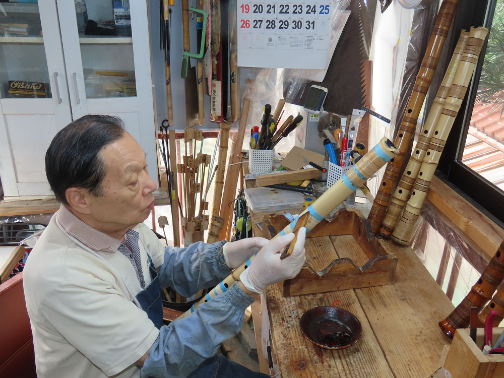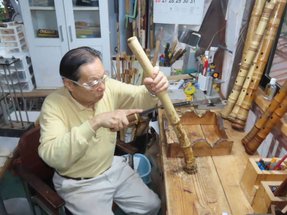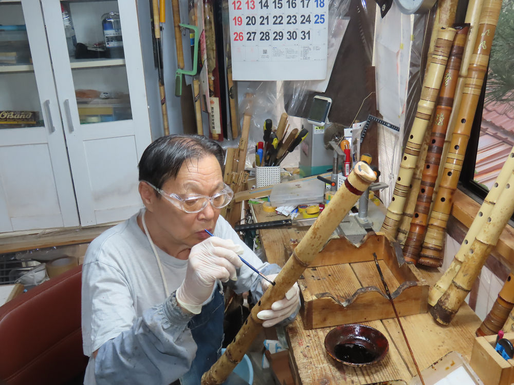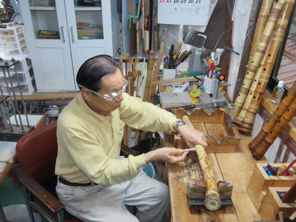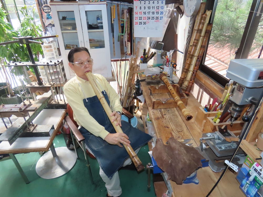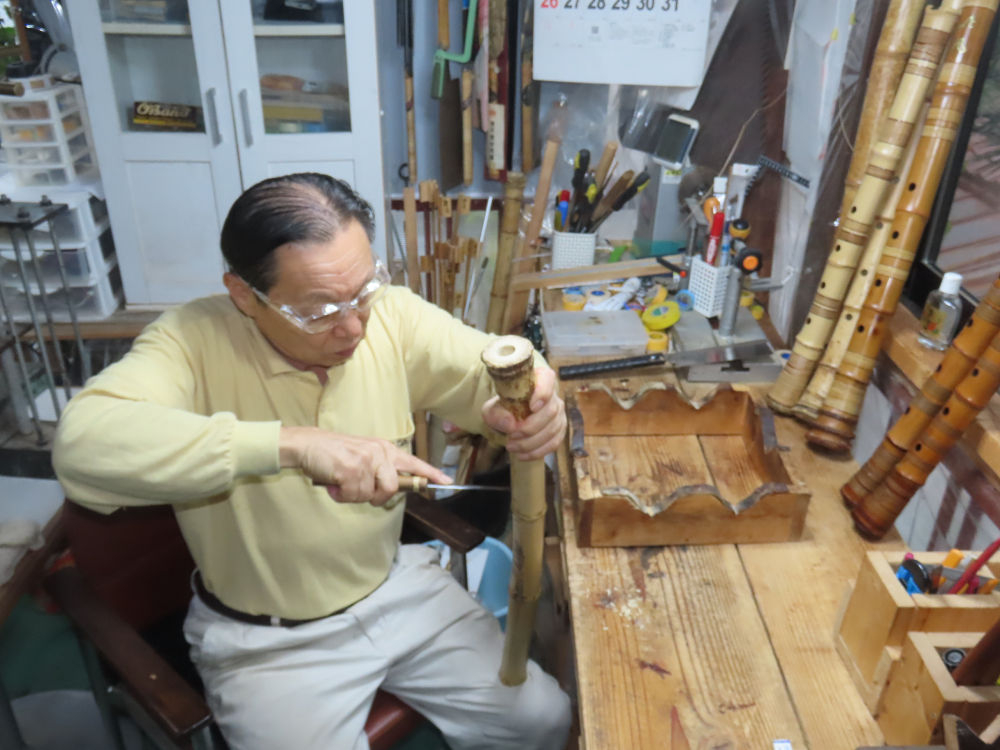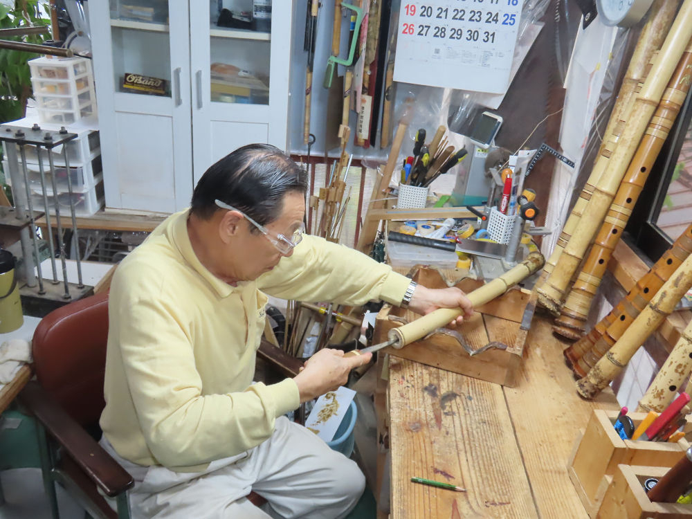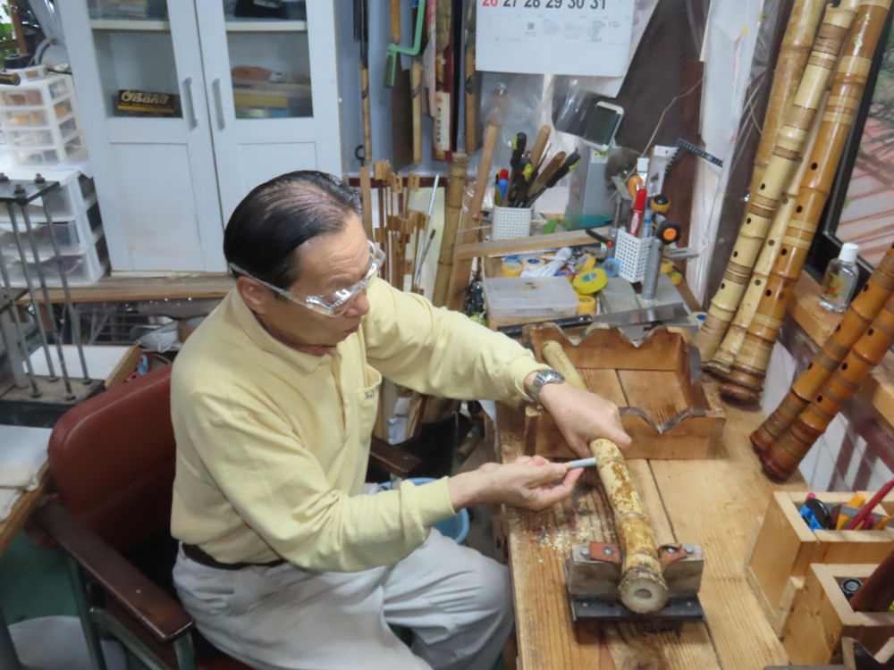 今日は、作業場の観葉植物の床部分のペンキが剥がれていたので、植物を移動して、コンクリート床の塗装をして、午後に乾燥したので、植物をもとに戻しました。その後、新規に2尺9寸管の竹材を用意して、ため直しをした後、節抜き作業、その後、手穴開けまでが完了しました。仕上がり重量が800グラムと、長い曲を吹くには腕が心配になります。門田笛空作の2尺6寸管と同じように、節マタギの尺八になります。みなさんに提供するものは、節間が良い見栄えの良いものを、私の吹き料は3尺をはじめ、節マタギばかりです。今回の2尺9寸も期待ができます。24日に白内障の手術も終わりましたが、まだ保護メガネを寝ているときも着用するようにと眼科医から言われています。幸いに、小さな文字も読めて、老眼鏡は必要ありません。