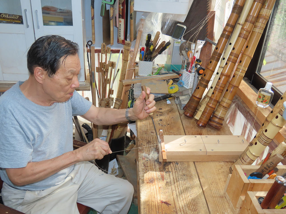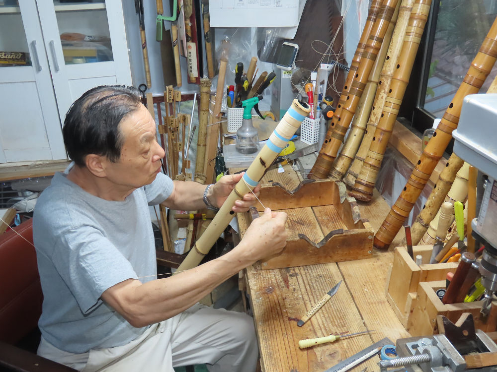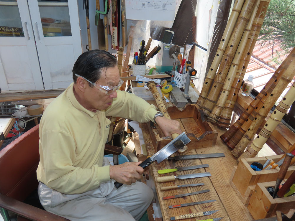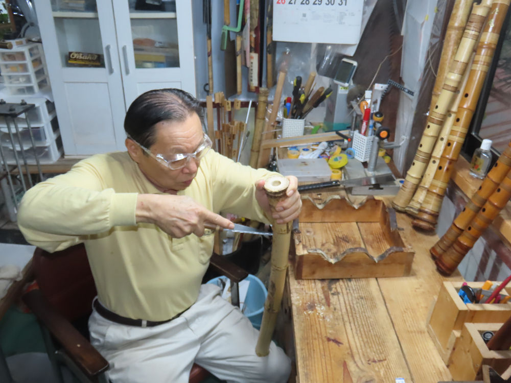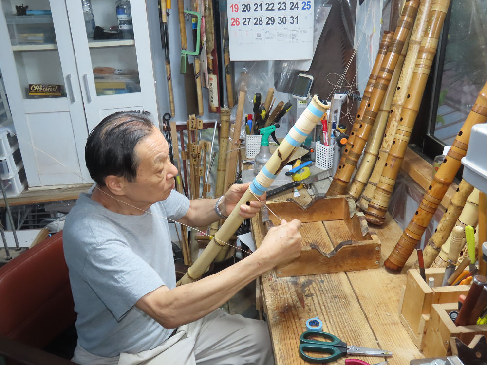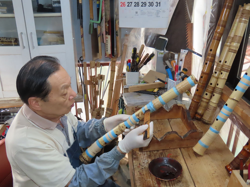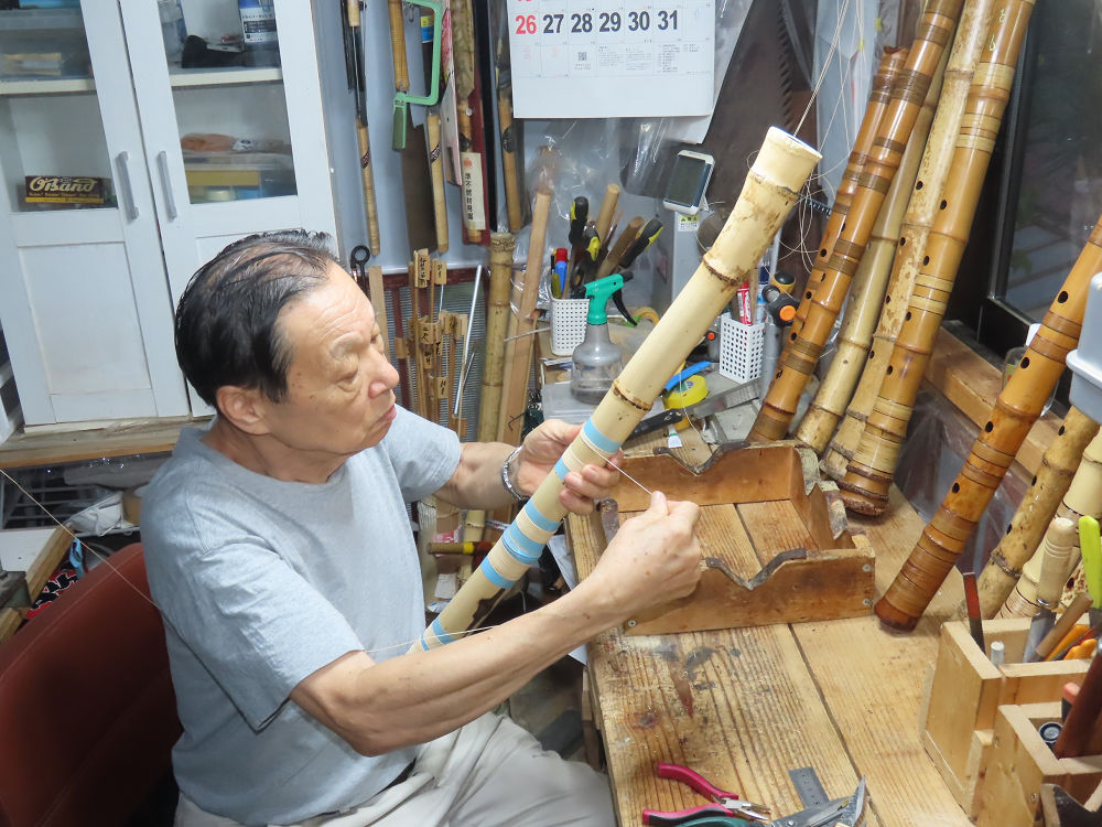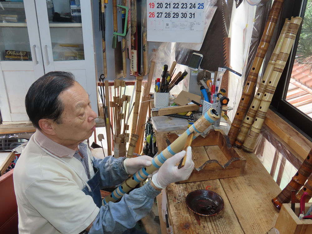 今日は、作業場の観葉植物の床部分のペンキが剥がれていたので、植物を移動して、コンクリート床の塗装をして、午後に乾燥したので、植物をもとに戻しました。その後、新規に2尺9寸管の竹材を用意して、ため直しをした後、節抜き作業、その後、手穴開けまでが完了しました。仕上がり重量が800グラムと、長い曲を吹くには腕が心配になります。門田笛空作の2尺6寸管と同じように、節マタギの尺八になります。みなさんに提供するものは、節間が良い見栄えの良いものを、私の吹き料は3尺をはじめ、節マタギばかりです。今回の2尺9寸も期待ができます。24日に白内障の手術も終わりましたが、まだ保護メガネを寝ているときも着用するようにと眼科医から言われています。幸いに、小さな文字も読めて、老眼鏡は必要ありません。