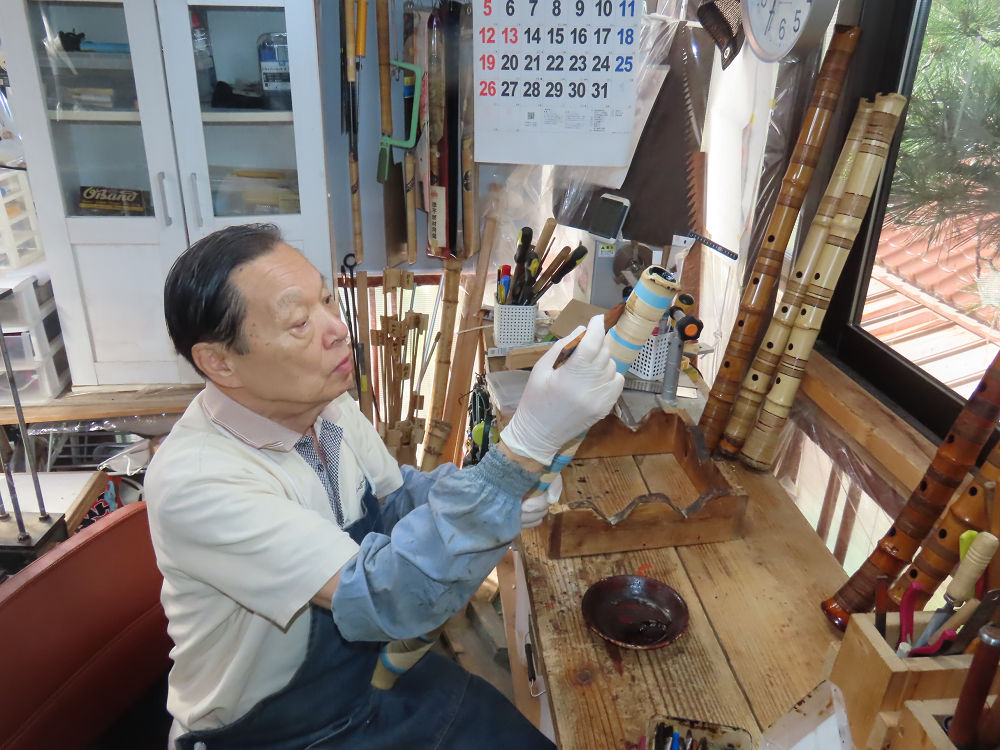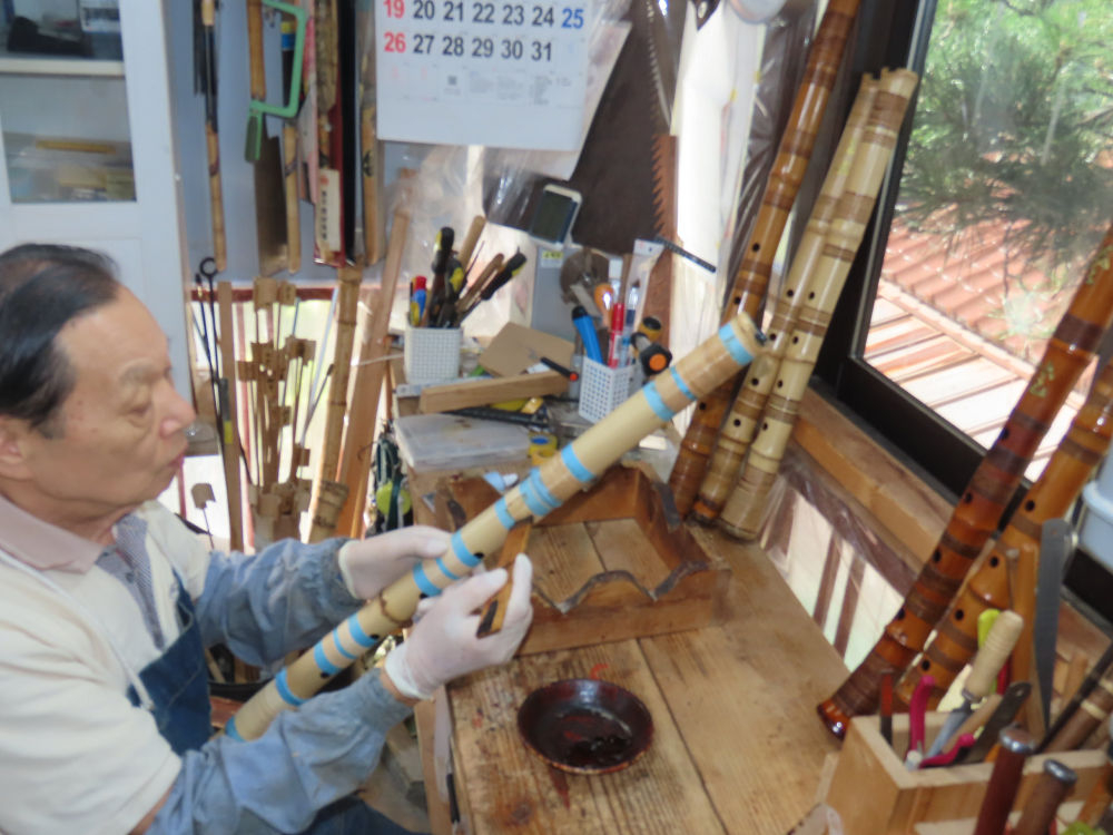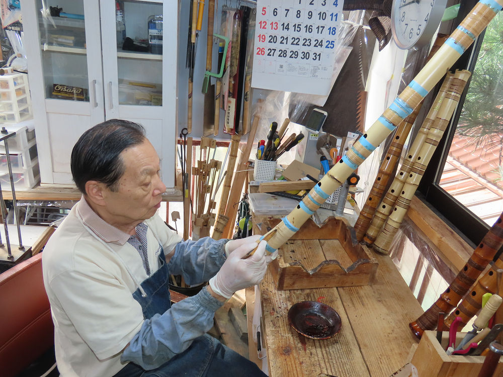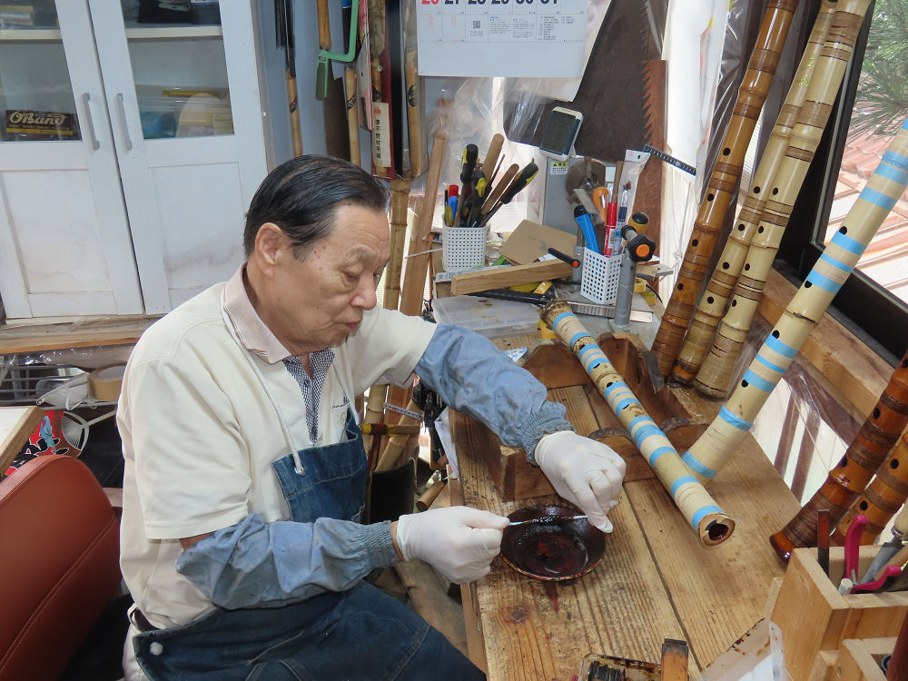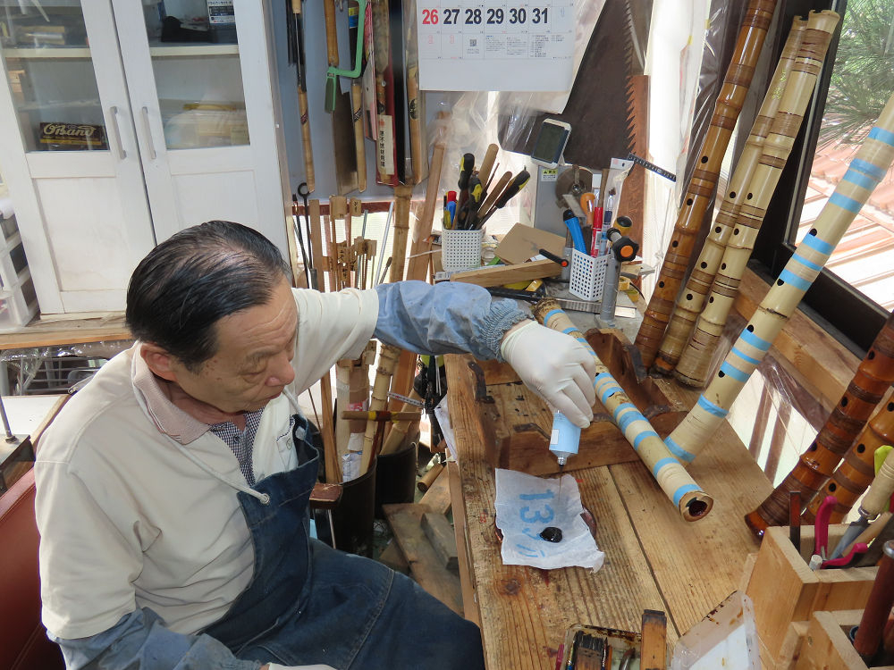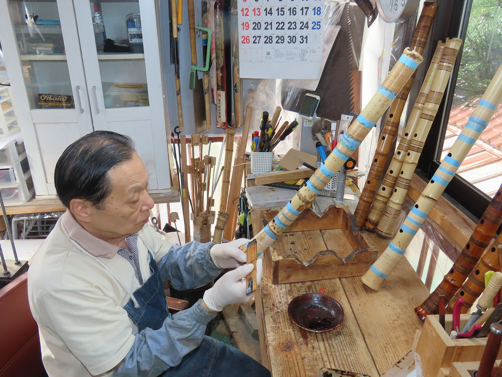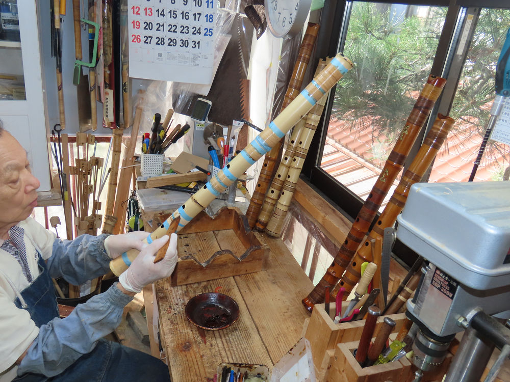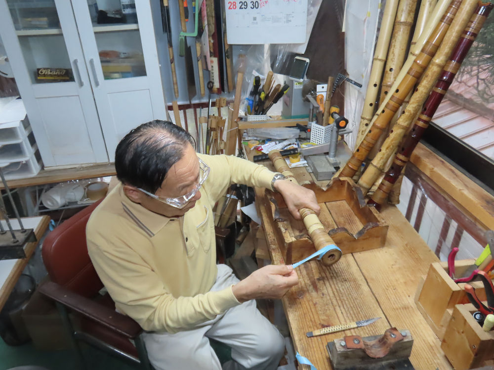 昨日、右目の白内障手術を受けて、眼科に泊まり、今朝の診察を受けてから帰宅しました。明日は、内科と眼科の通院で1日が終わりそうです。2尺2寸管の藤巻縁塗りが乾燥しました。養生テープを取り除きましたが、一か所、補修が必要なので、再度、漆塗りをして室箱に入れました。これが乾燥すれば、完成です。これまでの錦風流用の吹き料、2尺2寸管、どちらも560グラムでしたが、今回は600グラム、やはり重量が重い方が音味が良いです。