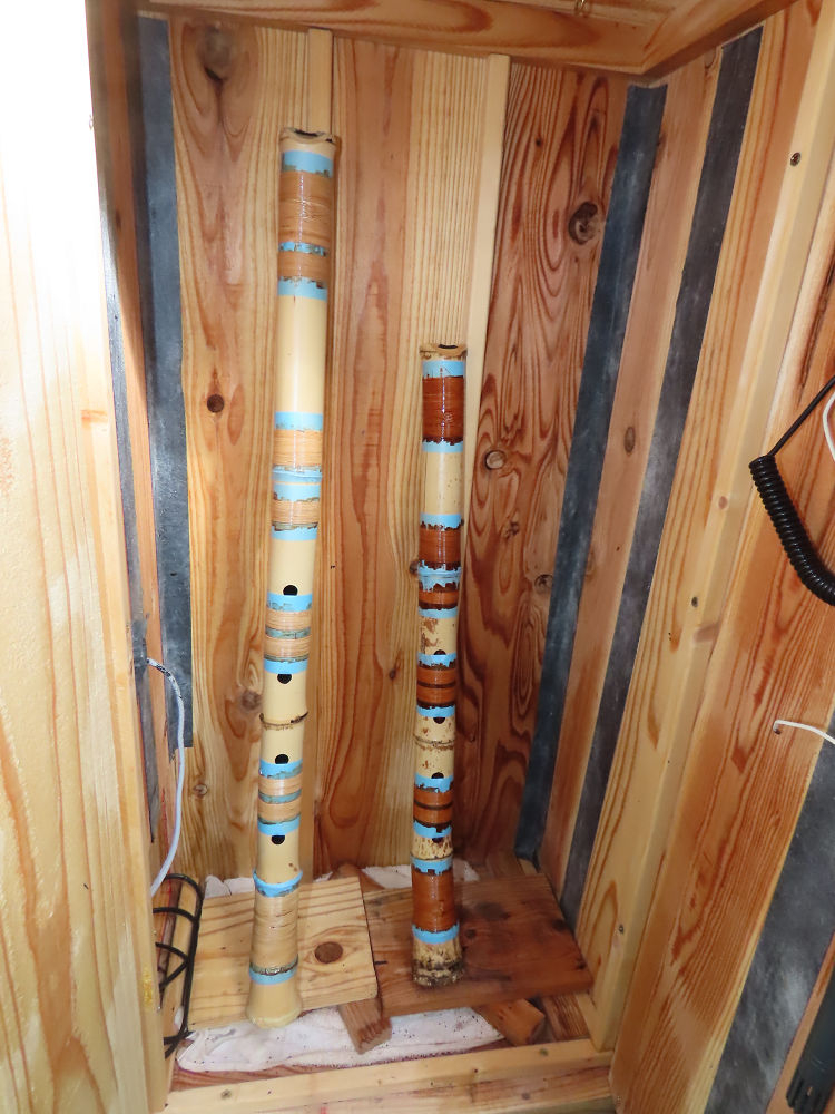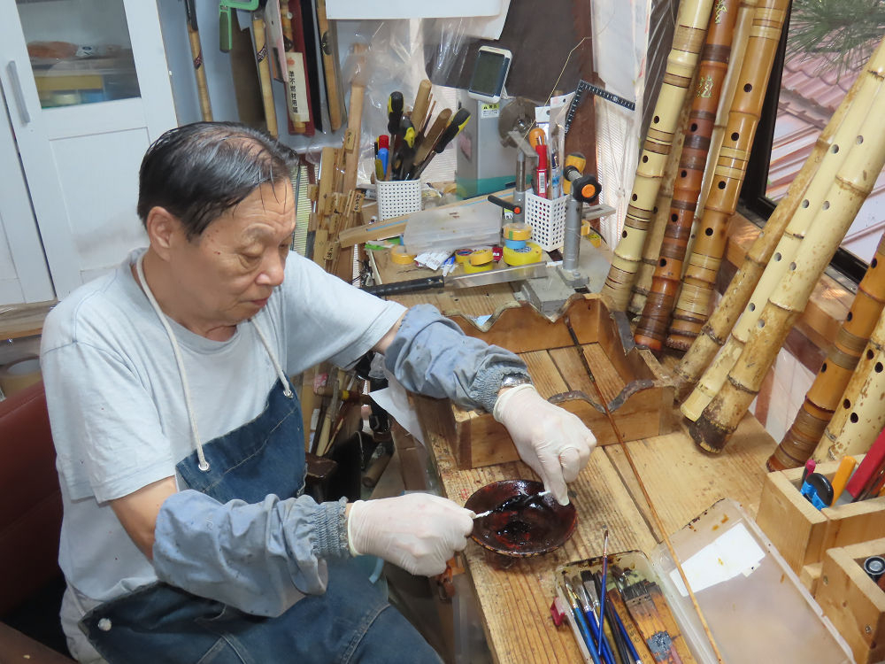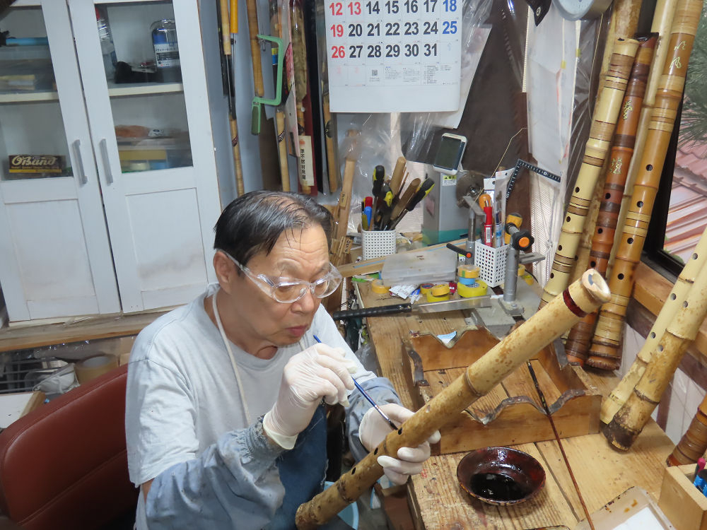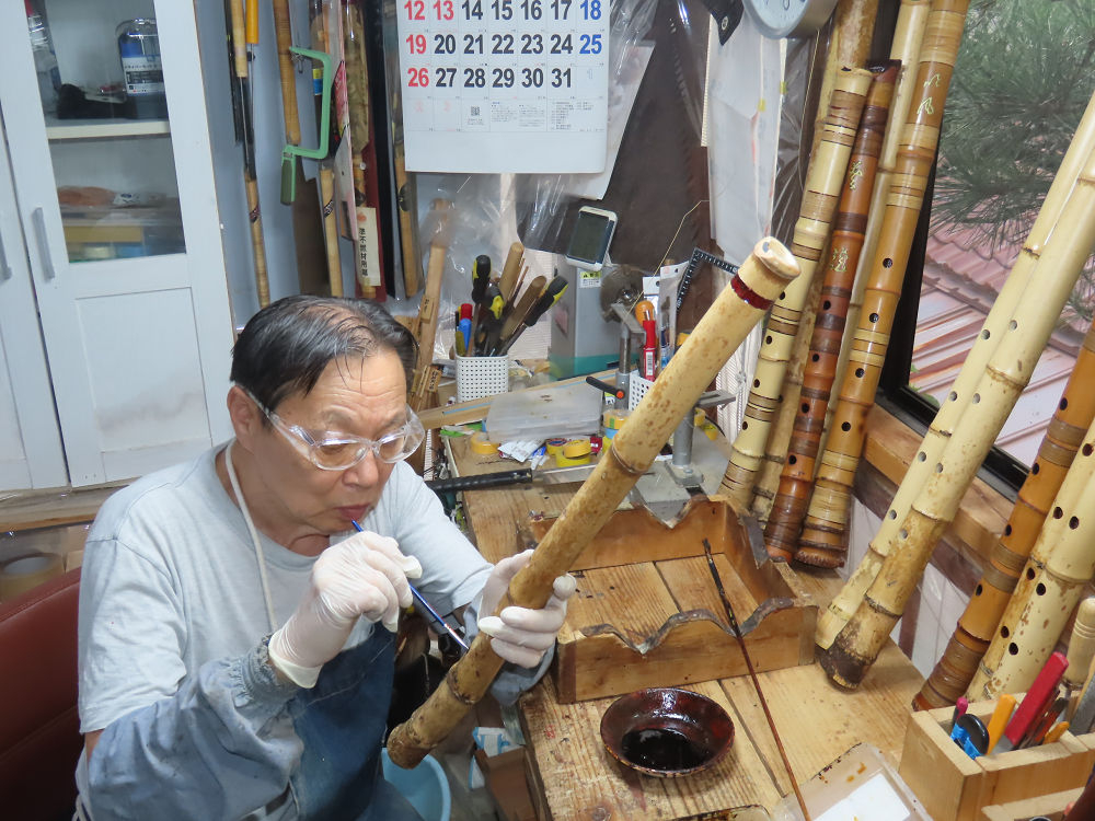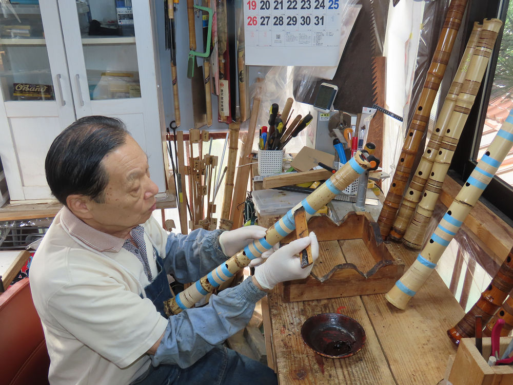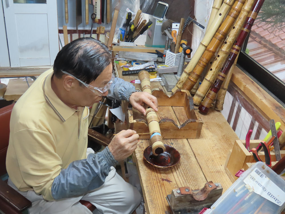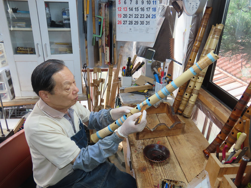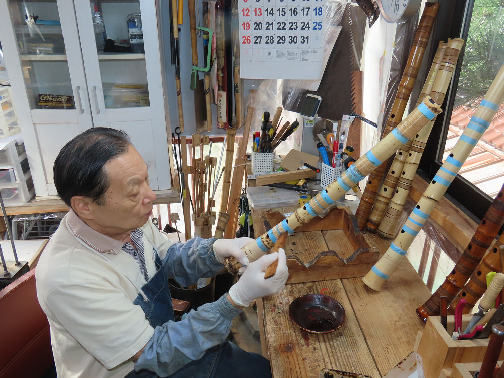 昨日、右目の白内障手術を受けて、眼科に泊まり、今朝の診察を受けてから帰宅しました。明日は、内科と眼科の通院で1日が終わりそうです。2尺2寸管の藤巻縁塗りが乾燥しました。養生テープを取り除きましたが、一か所、補修が必要なので、再度、漆塗りをして室箱に入れました。これが乾燥すれば、完成です。これまでの錦風流用の吹き料、2尺2寸管、どちらも560グラムでしたが、今回は600グラム、やはり重量が重い方が音味が良いです。