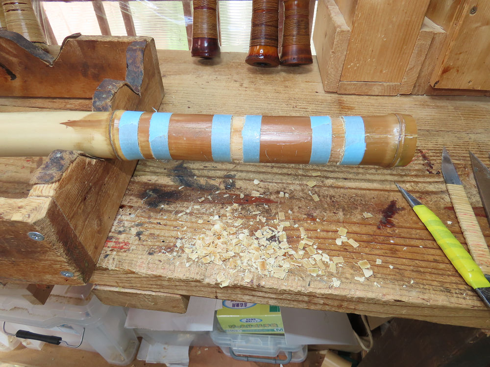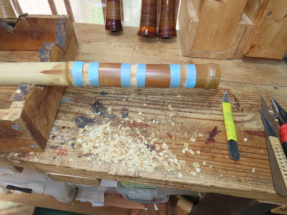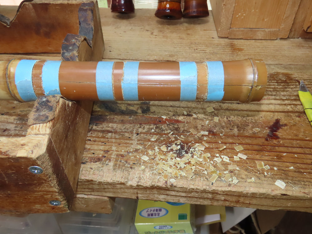 地無し尺八製作(その4)(2025.10.3)2尺1寸管の下作り作業