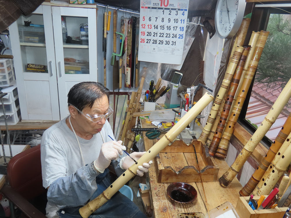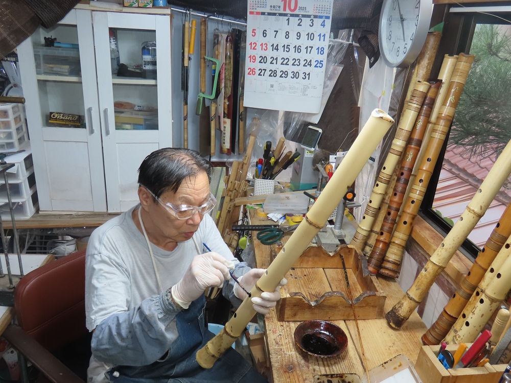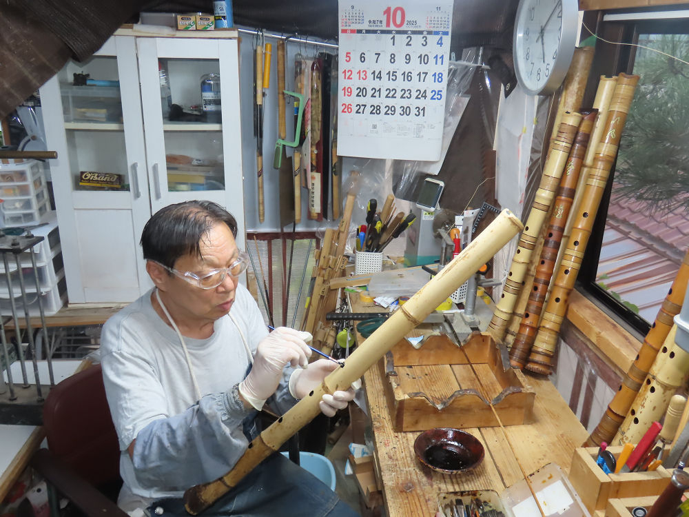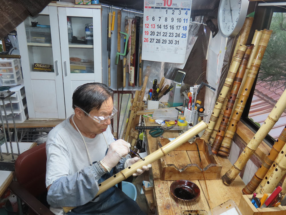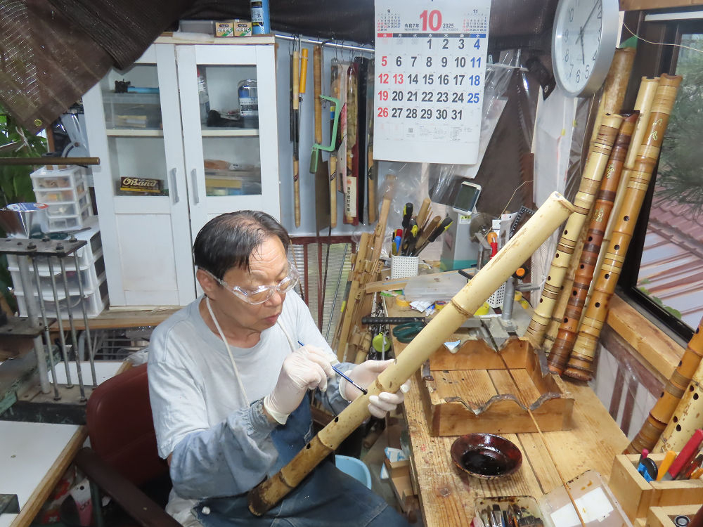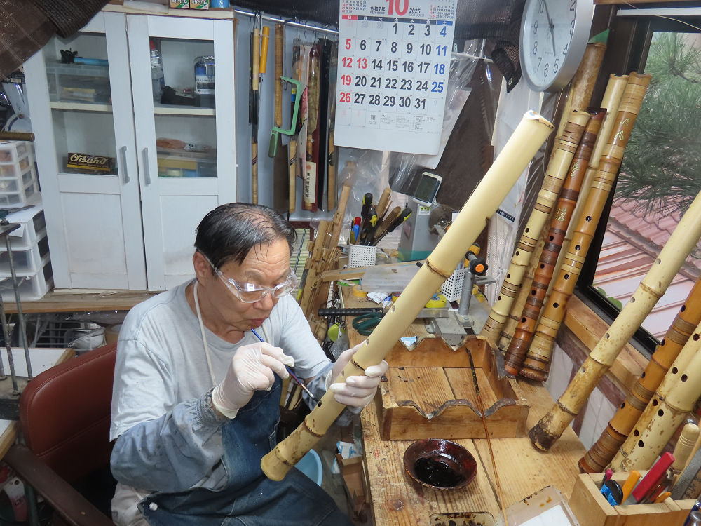 地無し尺八製作(その1)(2025.10.9)2本の尺八、藤巻表面漆塗り他作業