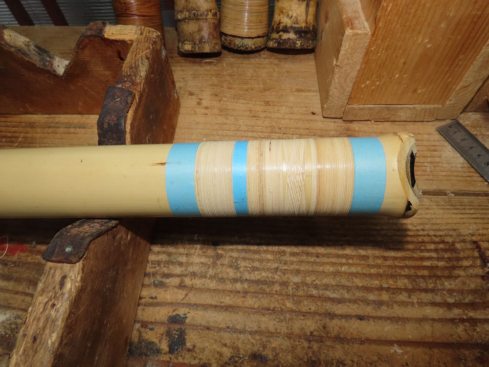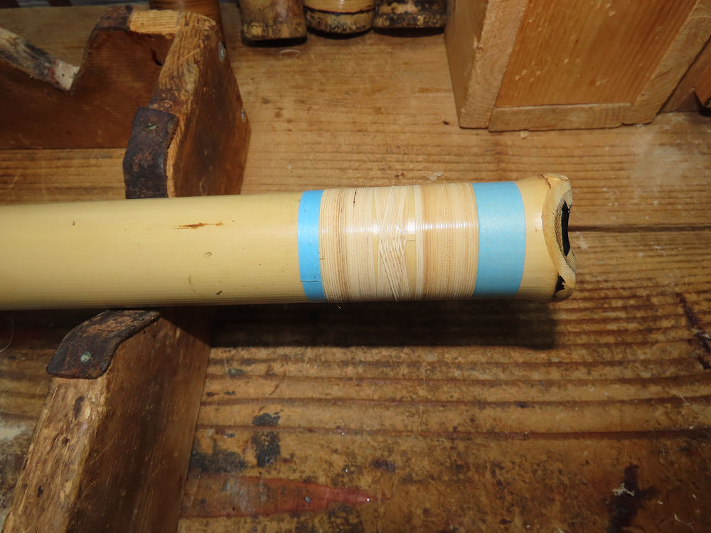 地無し尺八製作(その9)(2025.10.8)2尺1寸管の藤巻作業