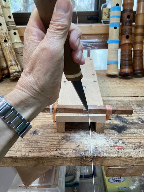 地無し尺八製作(その4)(2025.10.4)2尺1寸管の歌口入れまでの作業