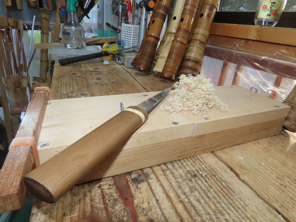 地無し尺八製作(その3)(2025.10.5)2尺1寸管の歌口仕上げ他作業