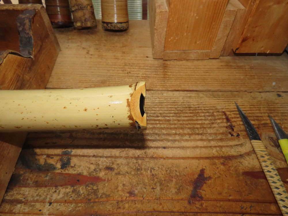 地無し尺八製作(その5)(2025.9.29)2尺9寸管の歌口入れまでの作業