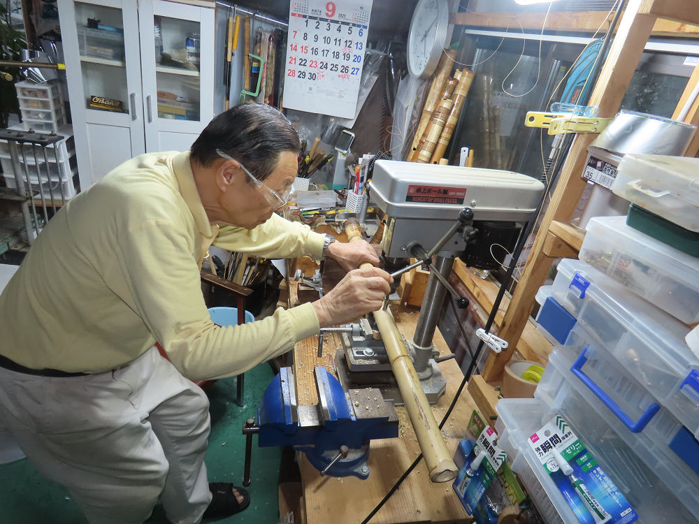 地無し尺八製作(その1)(2025.9.28)2尺9寸管下作り作業
