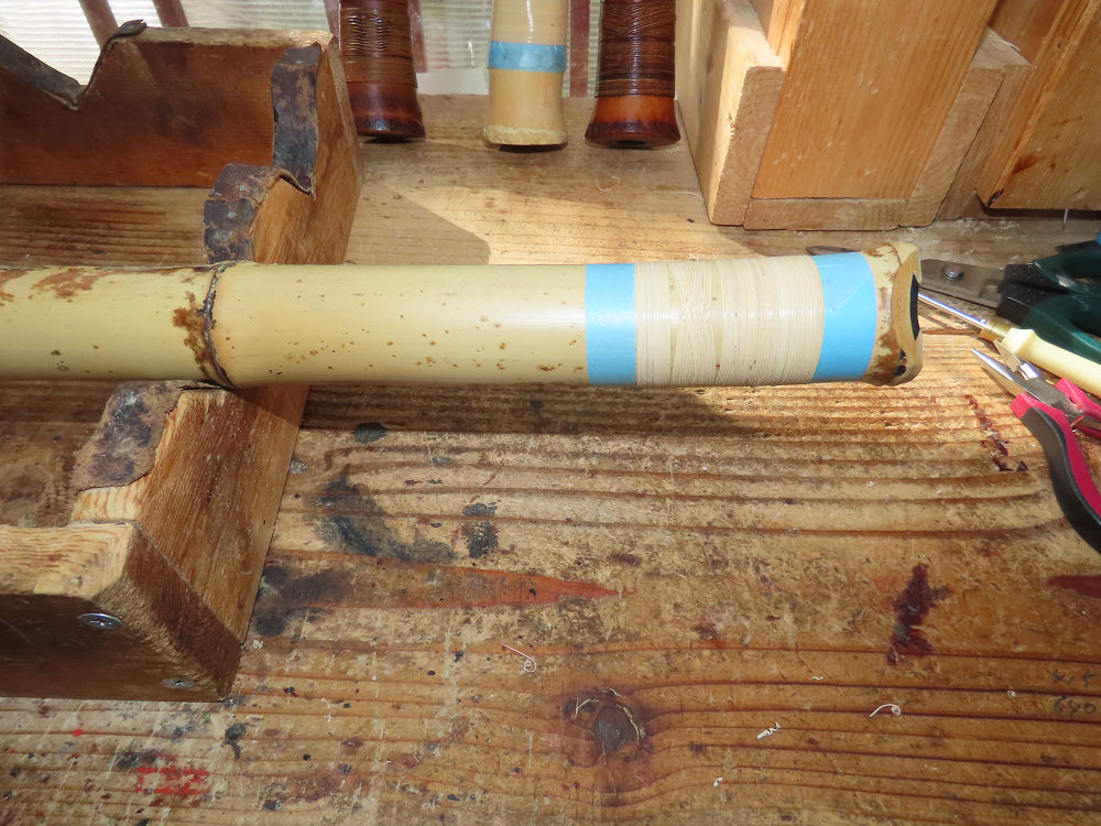 地無し尺八製作(その7)(2025.10.6)2尺6寸管の藤巻作業